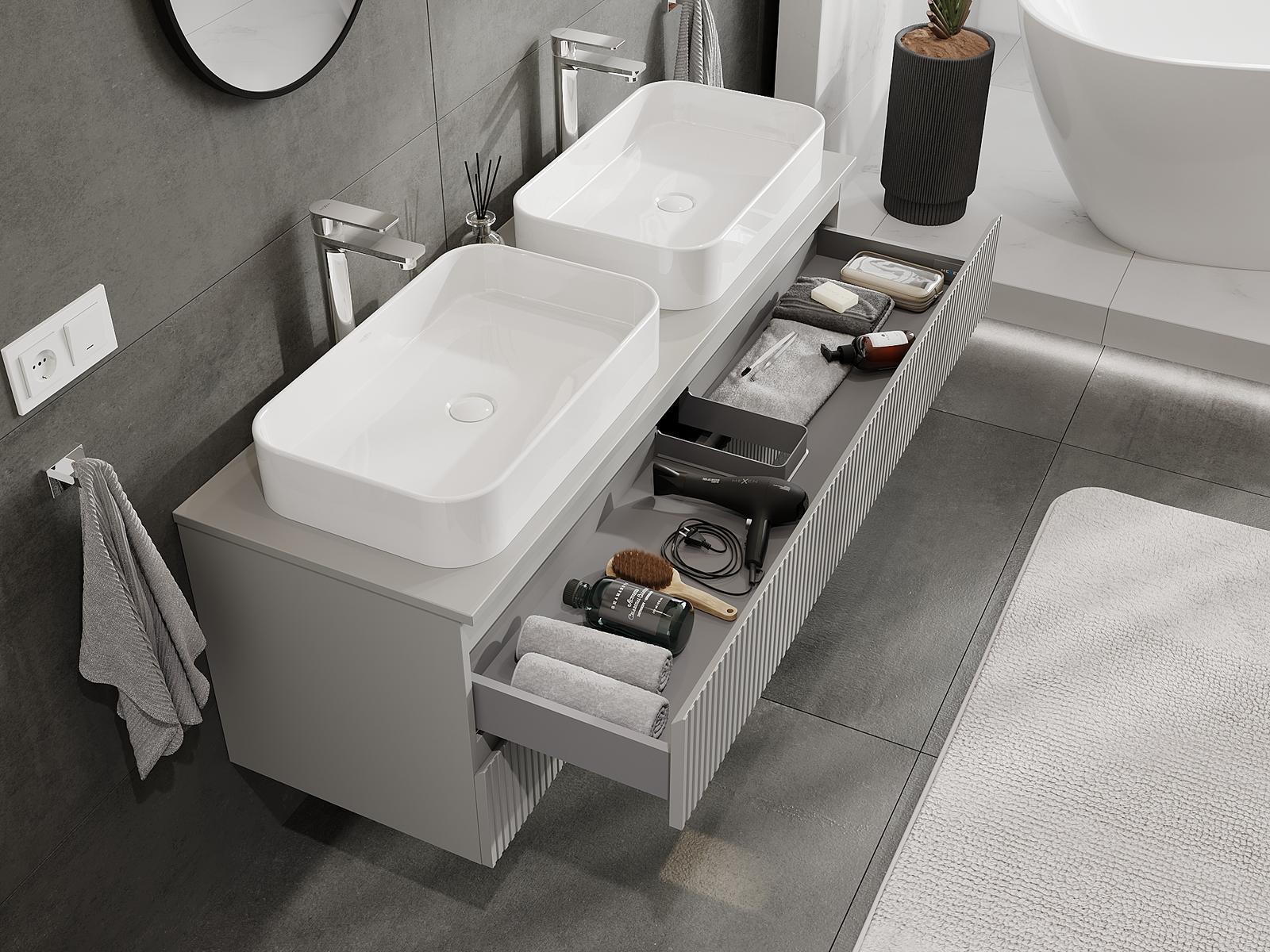 Our modular bathroom furniture can be combined in various colour configurations, allowing for complete personalisation. You can choose both the appearance and functions of individual elements, enabling you to adapt the furniture to your own stylistic and functional preferences.