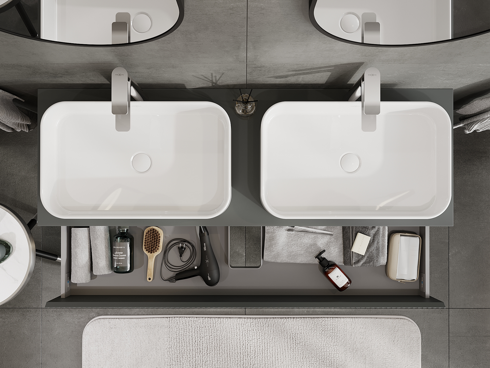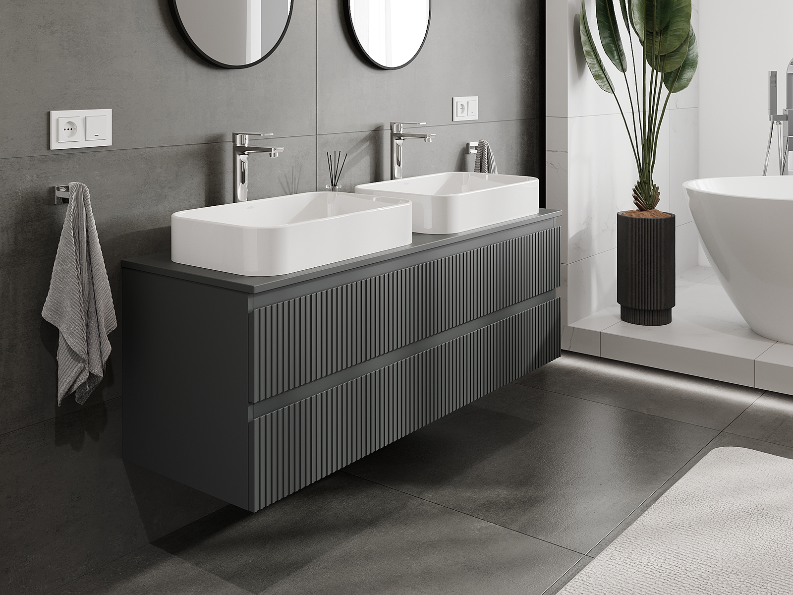 Our modular bathroom furniture can be combined in various colour configurations, allowing for complete personalisation. You can choose both the appearance and functions of individual elements, enabling you to adapt the furniture to your own stylistic and functional preferences.