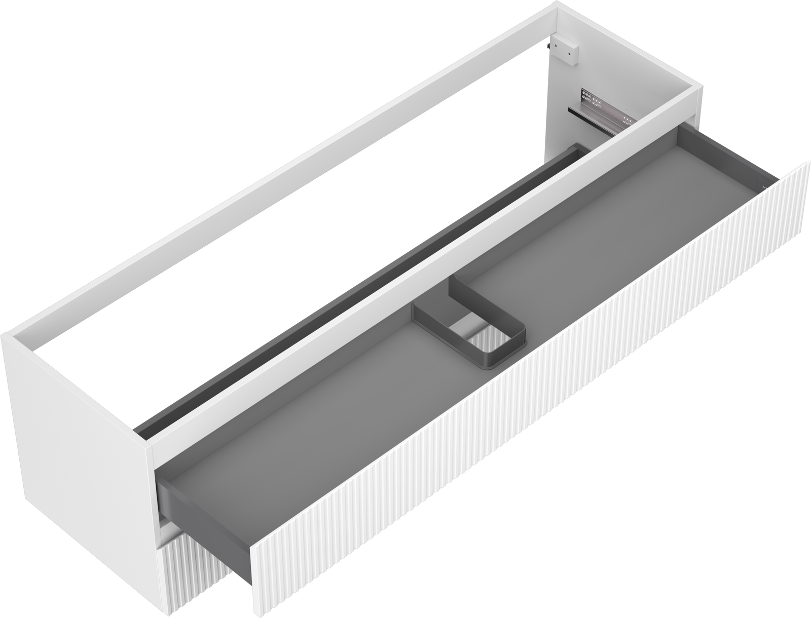 The cutout in the drawer is designed in such a way as to accommodate the siphon, which is essential in sink installations. This allows the furniture to be fully functional without having to give up drawer space for the installation.