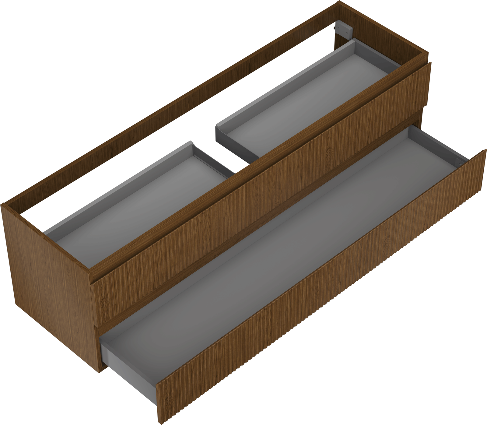 Mexen Rivel bathroom cabinet under sink 160 cm, 2 drawers, fluted, walnut - 91A20-16047-2-BFF86