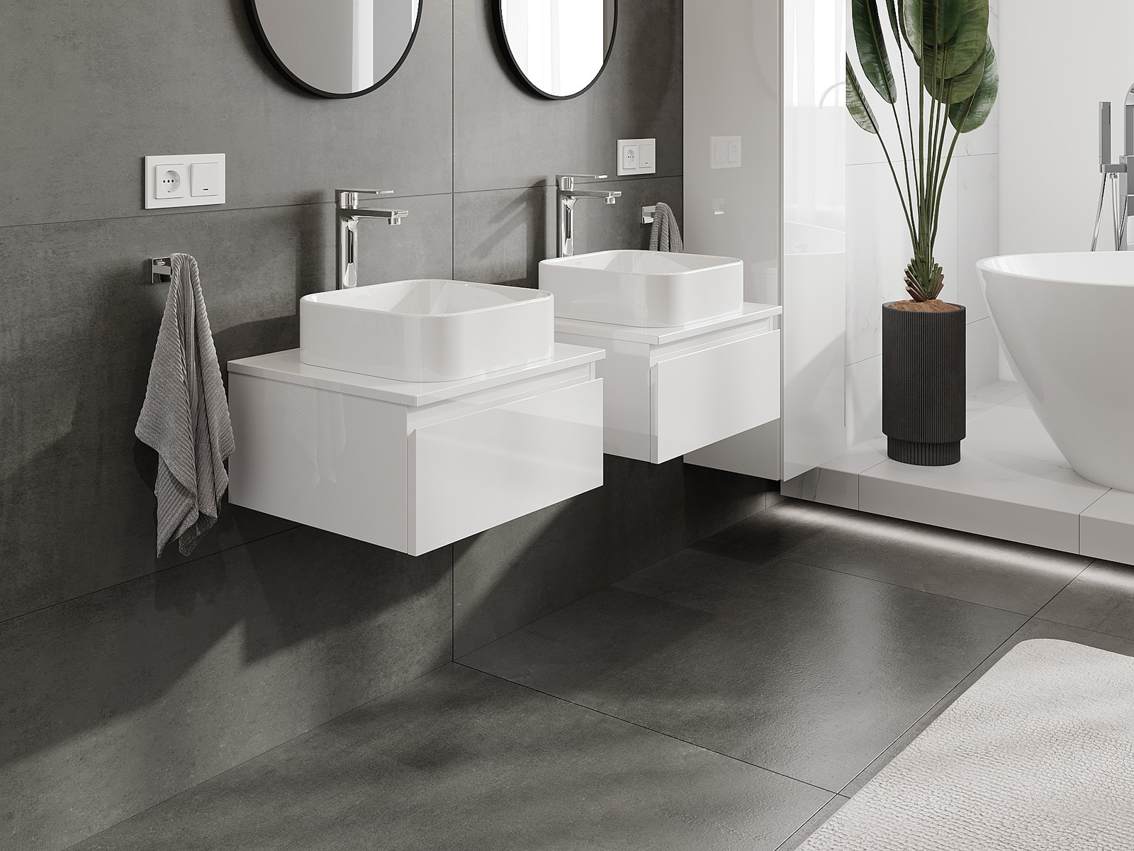 Our modular bathroom furniture can be combined in various colour configurations, allowing for complete personalisation. You can choose both the appearance and functions of individual elements, enabling you to adapt the furniture to your own stylistic and functional preferences.