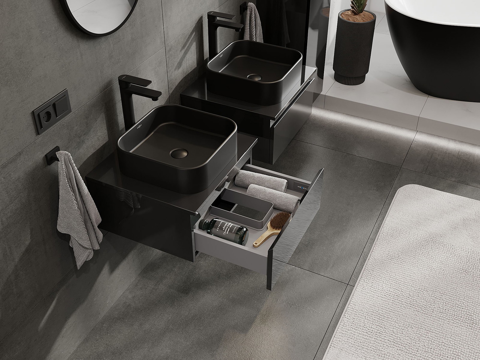 Our modular bathroom furniture can be combined in various colour configurations, allowing for complete personalisation. You can choose both the appearance and functions of individual elements, enabling you to adapt the furniture to your own stylistic and functional preferences.