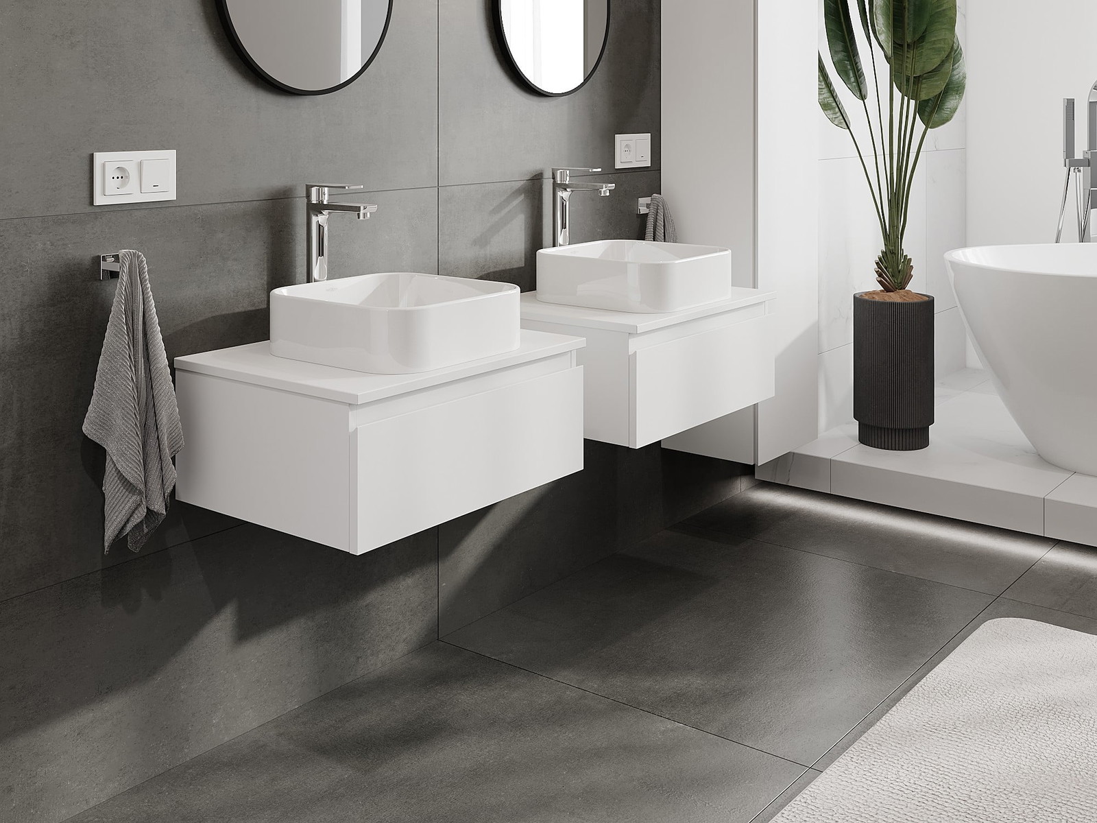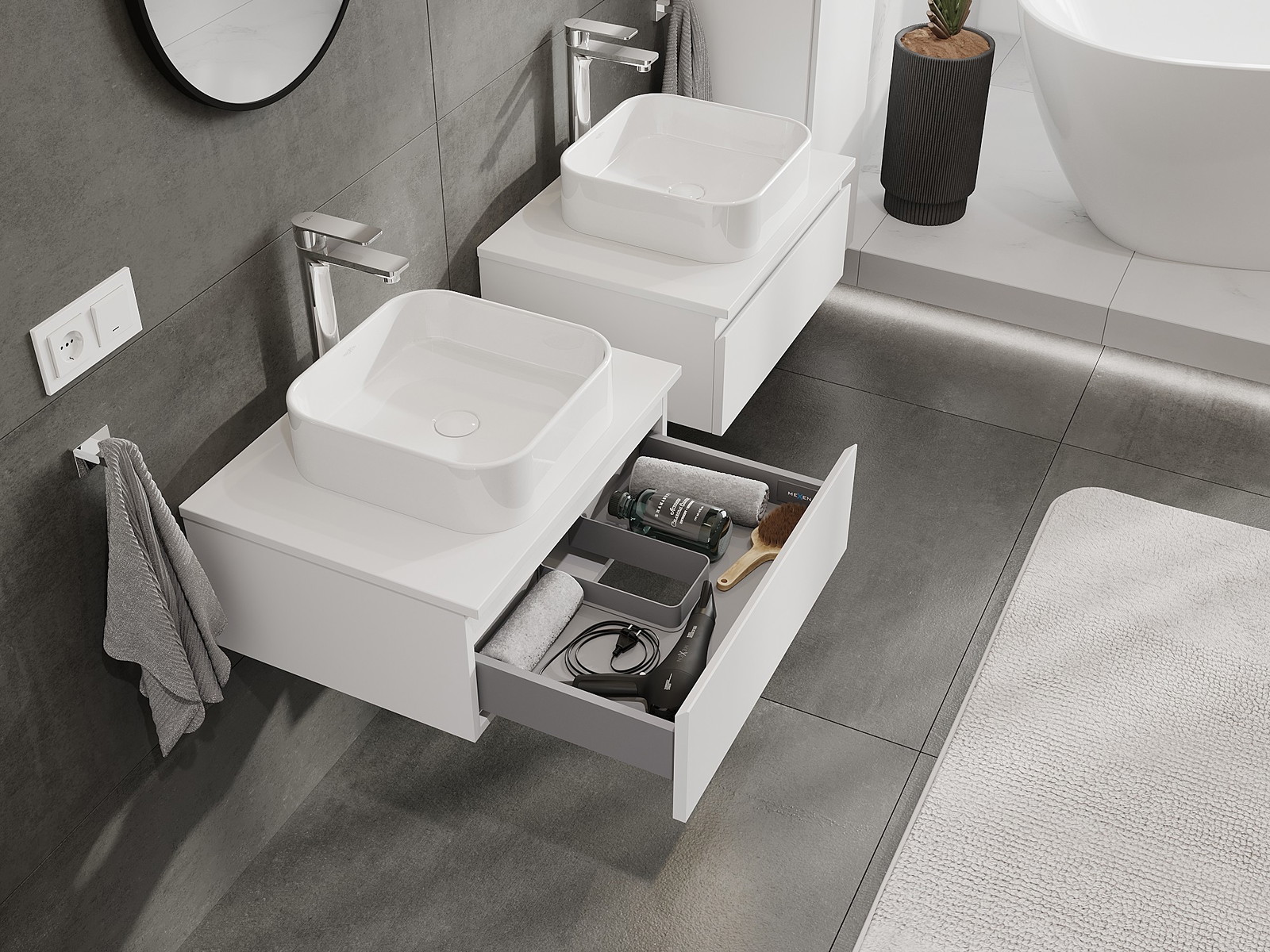 Our modular bathroom furniture can be combined in various colour configurations, allowing for complete personalisation. You can choose both the appearance and functions of individual elements, enabling you to adapt the furniture to your own stylistic and functional preferences.