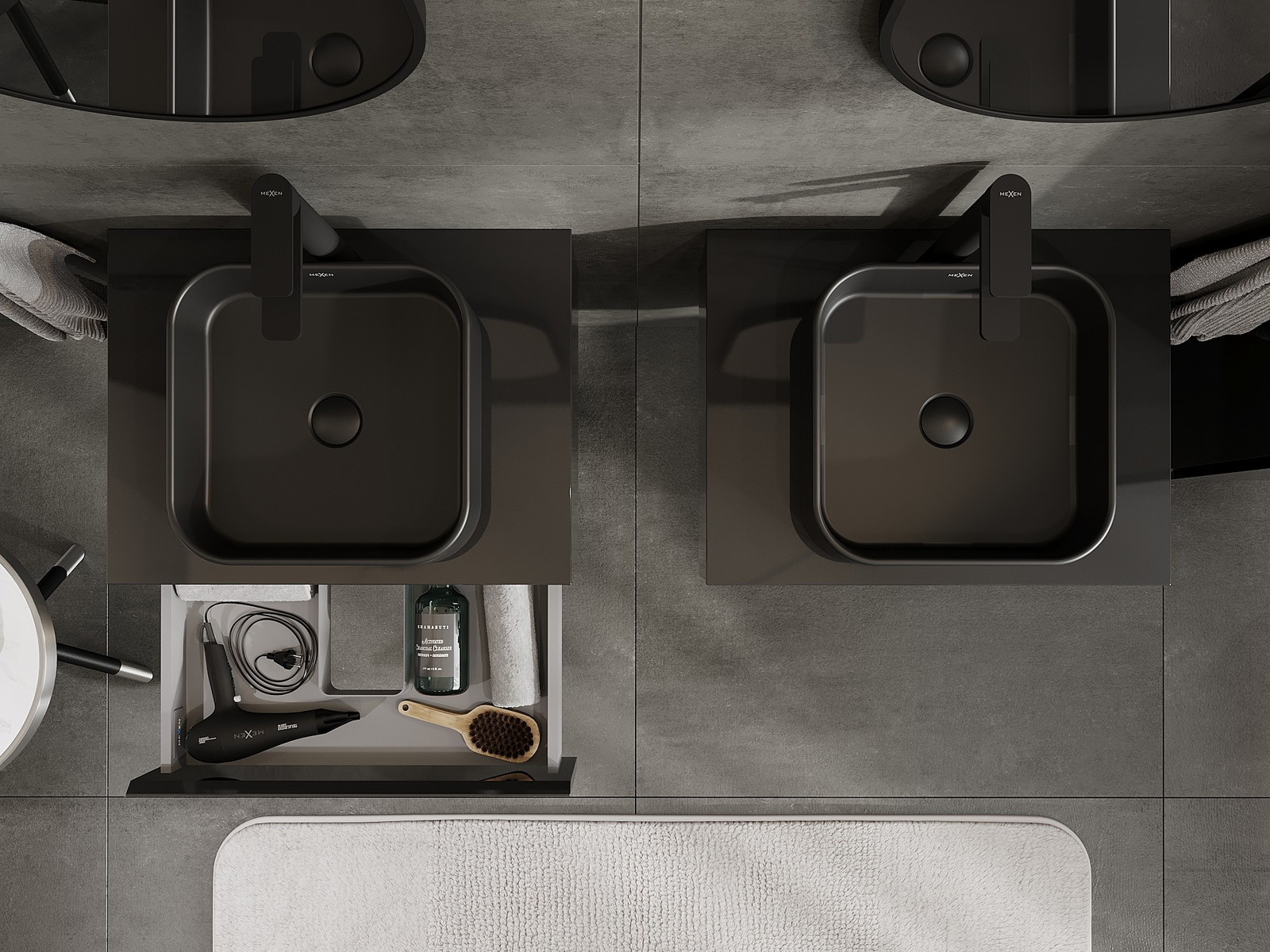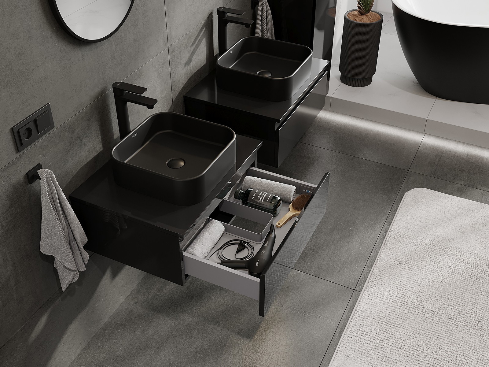 Our modular bathroom furniture can be combined in various colour configurations, allowing for complete personalisation. You can choose both the appearance and functions of individual elements, enabling you to adapt the furniture to your own stylistic and functional preferences.
