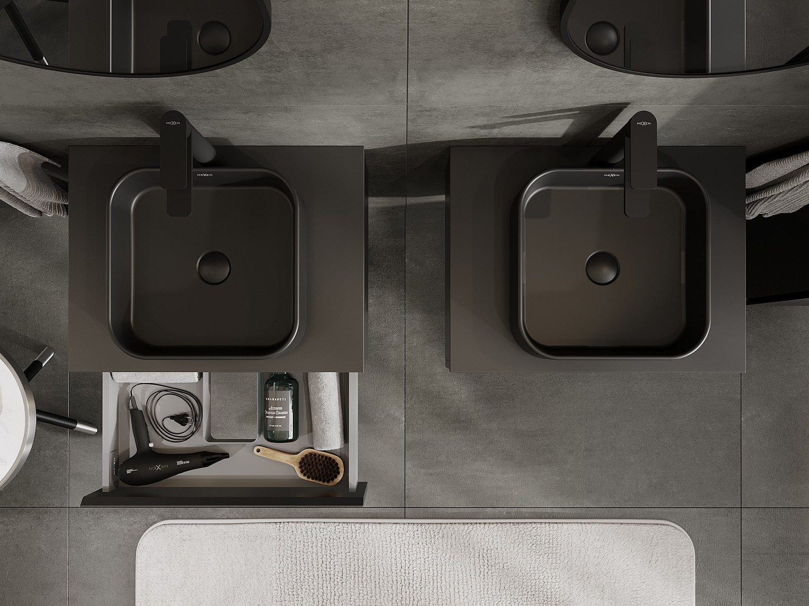 Our modular bathroom furniture can be combined in various colour configurations, allowing for complete personalisation. You can choose both the appearance and functions of individual elements, enabling you to adapt the furniture to your own stylistic and functional preferences.