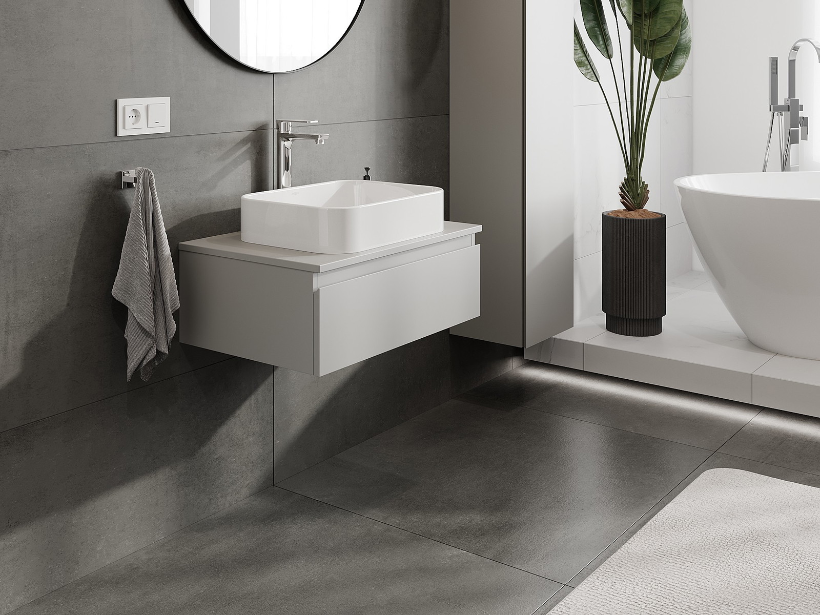 Our modular bathroom furniture can be combined in various colour configurations, allowing for complete personalisation. You can choose both the appearance and functions of individual elements, enabling you to adapt the furniture to your own stylistic and functional preferences.