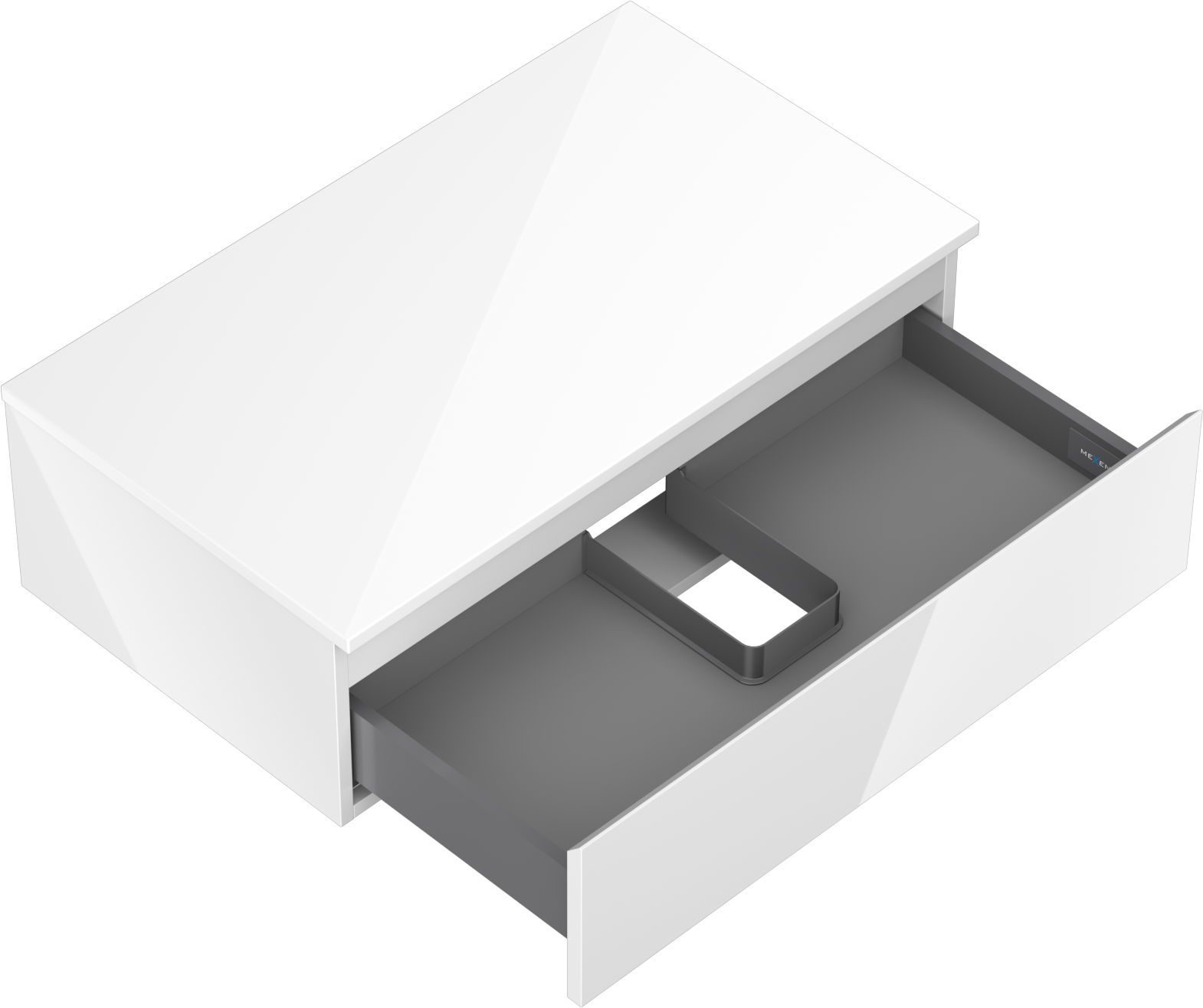 The cutout in the drawer is designed in such a way as to accommodate the siphon, which is essential in sink installations. This allows the furniture to be fully functional without having to give up drawer space for the installation.