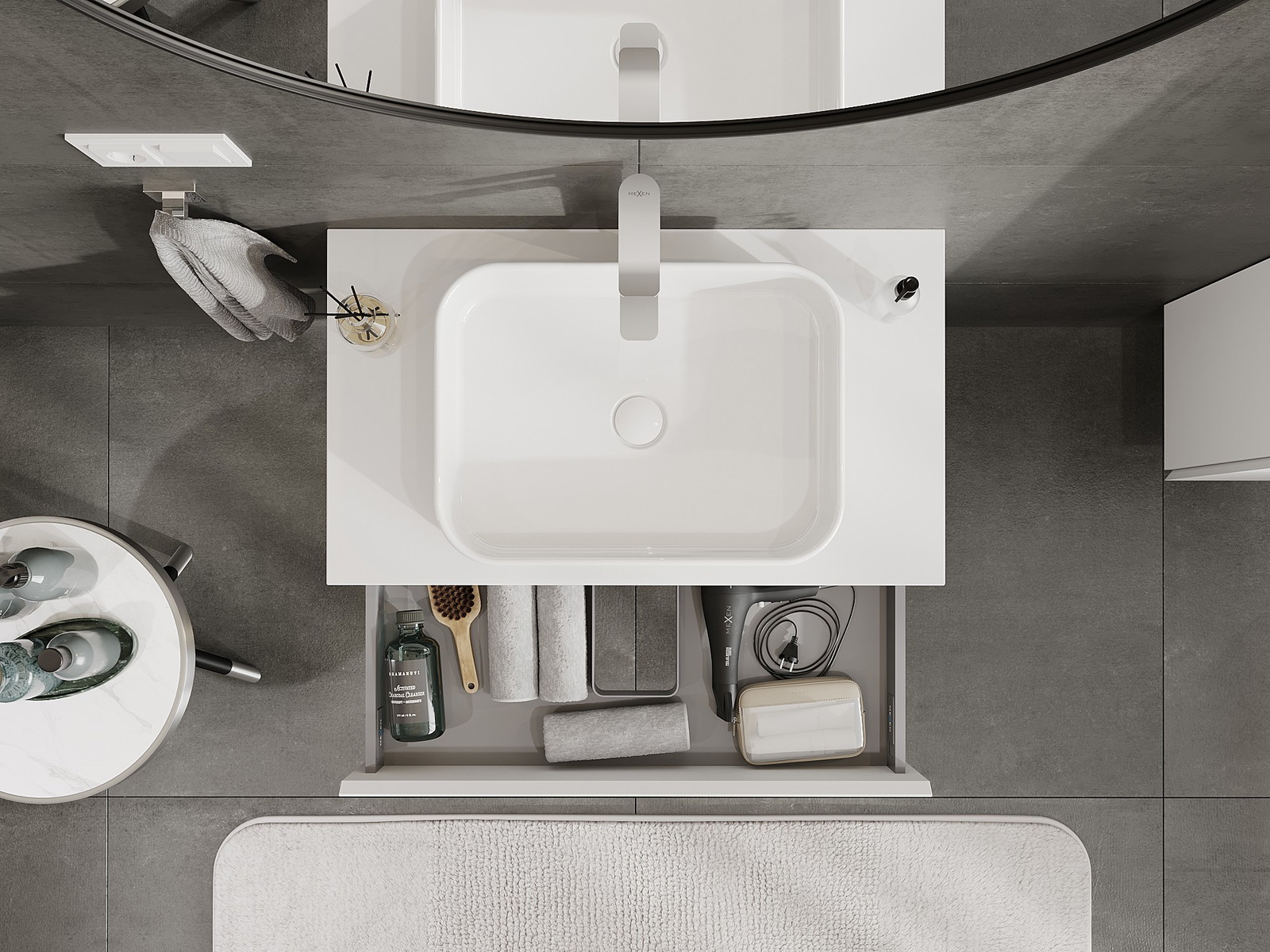 Our modular bathroom furniture can be combined in various colour configurations, allowing for complete personalisation. You can choose both the appearance and functions of individual elements, enabling you to adapt the furniture to your own stylistic and functional preferences.