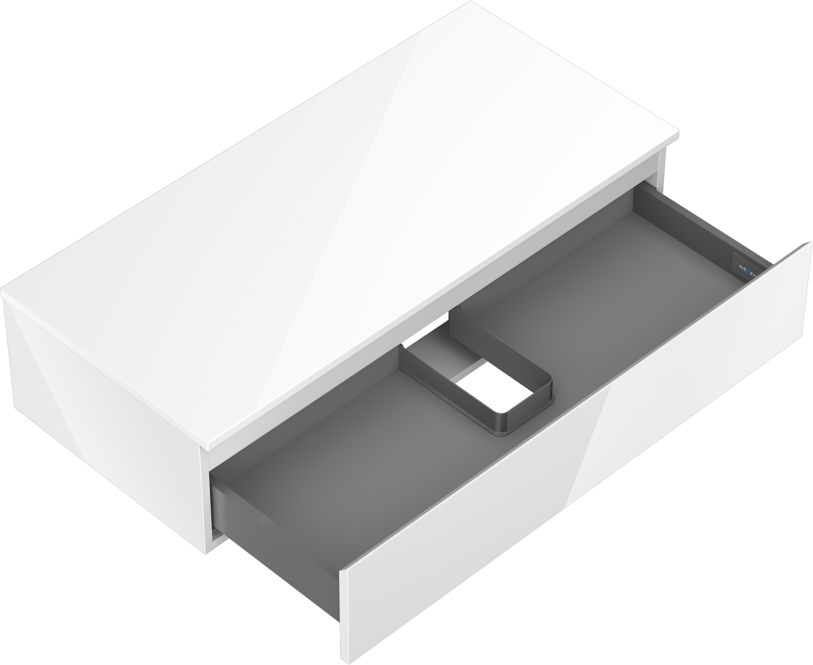 The cutout in the drawer is designed in such a way as to accommodate the siphon, which is essential in sink installations. This allows the furniture to be fully functional without having to give up drawer space for the installation.