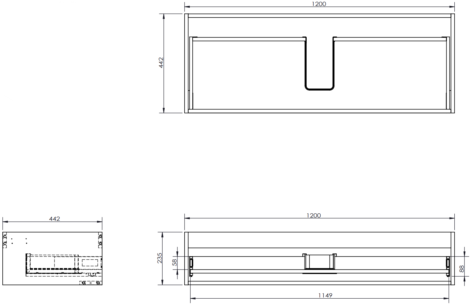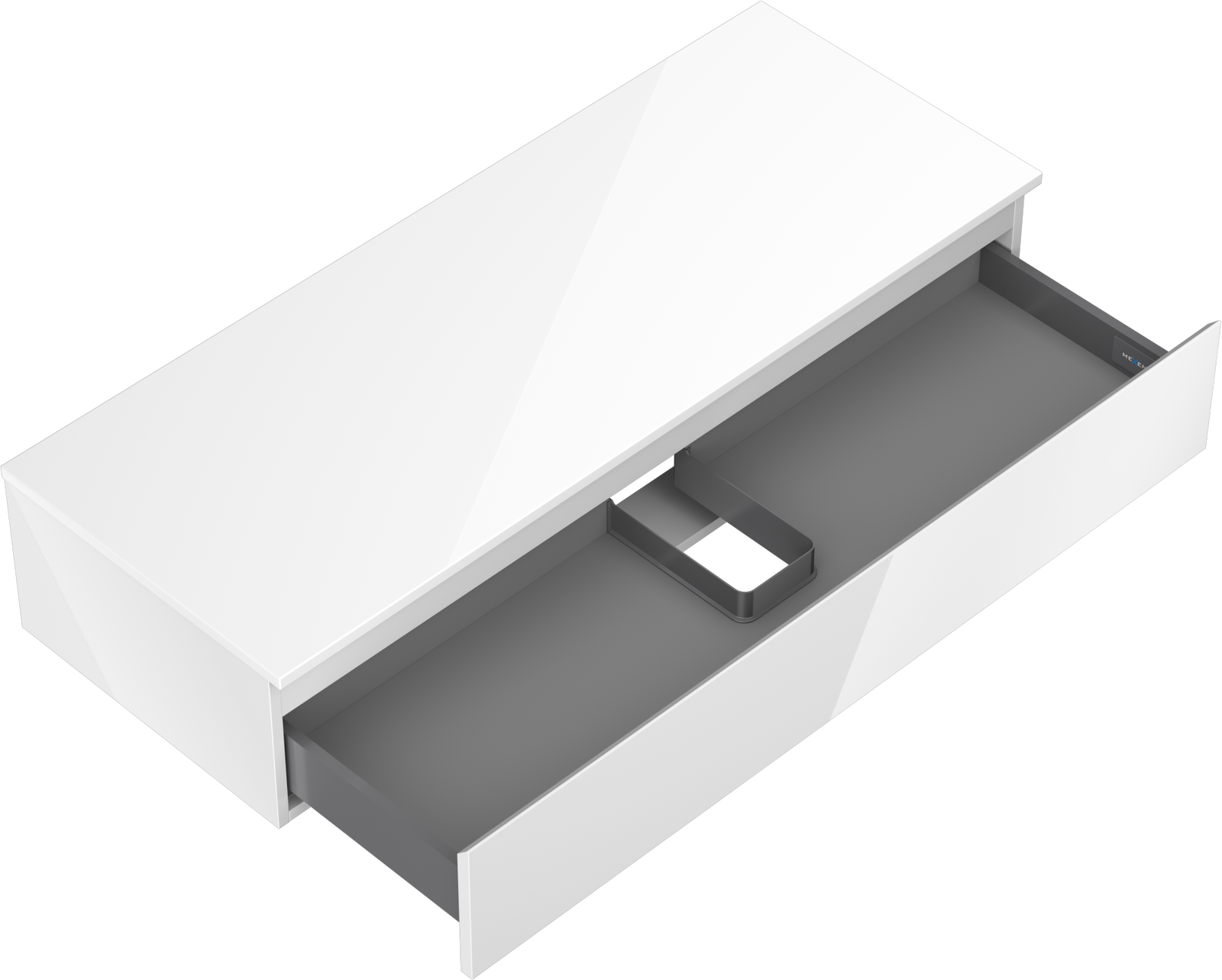 The cutout in the drawer is designed in such a way as to accommodate the siphon, which is essential in sink installations. This allows the furniture to be fully functional without having to give up drawer space for the installation.