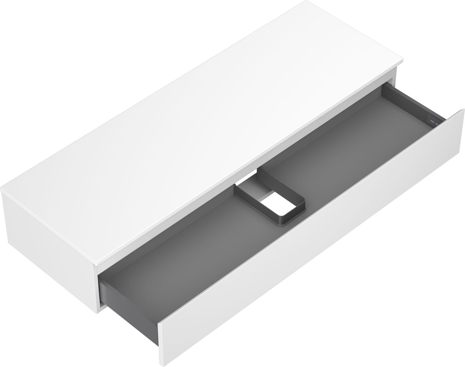 The cutout in the drawer is designed in such a way as to accommodate the siphon, which is essential in sink installations. This allows the furniture to be fully functional without having to give up drawer space for the installation.