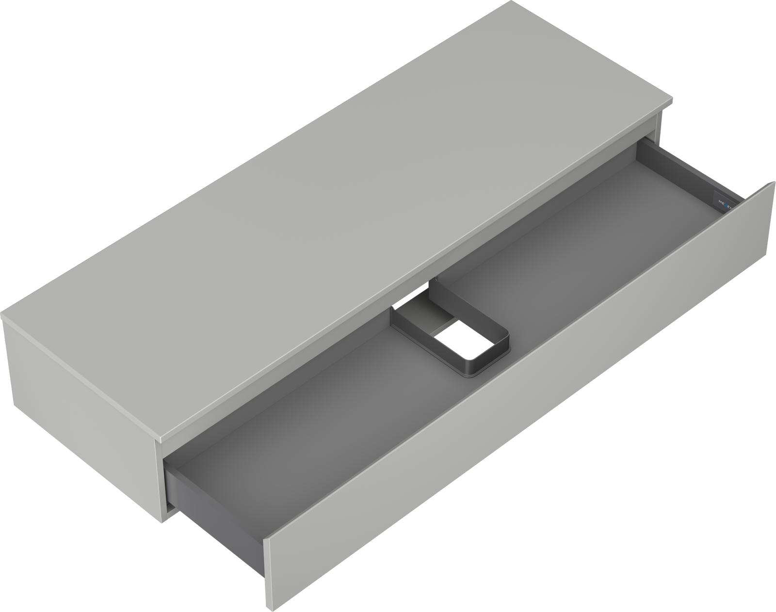 The cutout in the drawer is designed in such a way as to accommodate the siphon, which is essential in sink installations. This allows the furniture to be fully functional without having to give up drawer space for the installation.