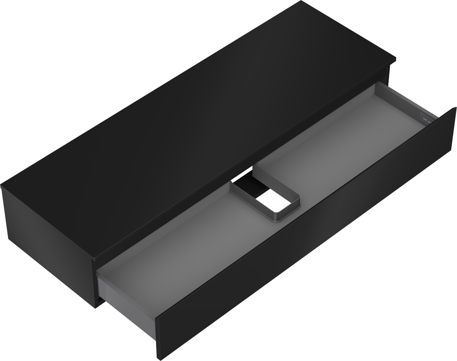 The cutout in the drawer is designed in such a way as to accommodate the siphon, which is essential in sink installations. This allows the furniture to be fully functional without having to give up drawer space for the installation.