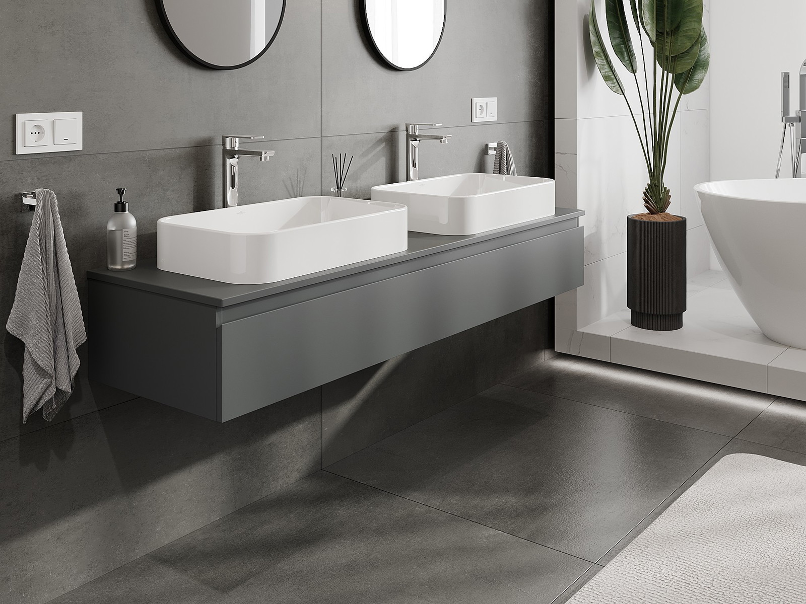 Our modular bathroom furniture can be combined in various colour configurations, allowing for complete personalisation. You can choose both the appearance and functions of individual elements, enabling you to adapt the furniture to your own stylistic and functional preferences.