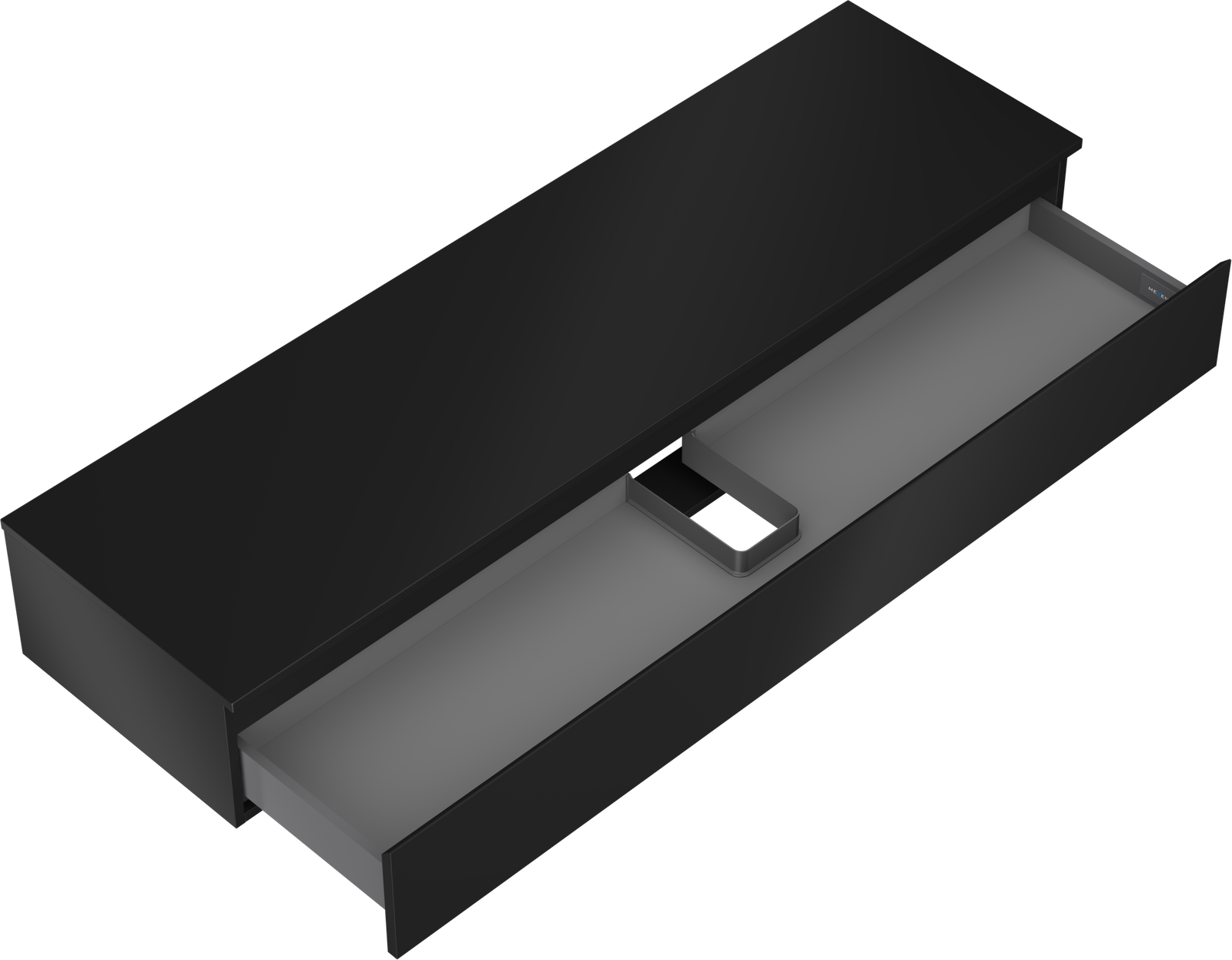 The cutout in the drawer is designed in such a way as to accommodate the siphon, which is essential in sink installations. This allows the furniture to be fully functional without having to give up drawer space for the installation.