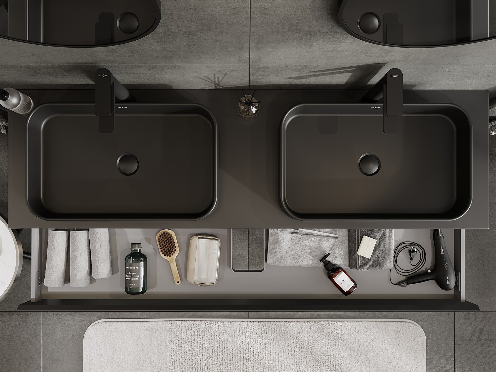 Our modular bathroom furniture can be combined in various colour configurations, allowing for complete personalisation. You can choose both the appearance and functions of individual elements, enabling you to adapt the furniture to your own stylistic and functional preferences.