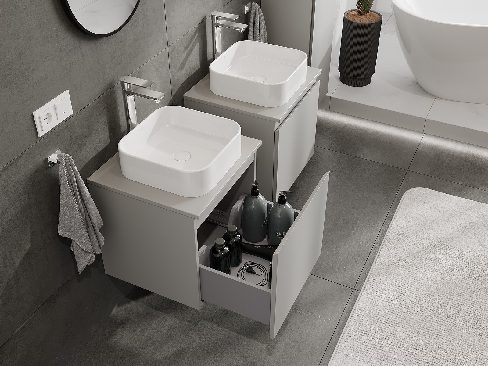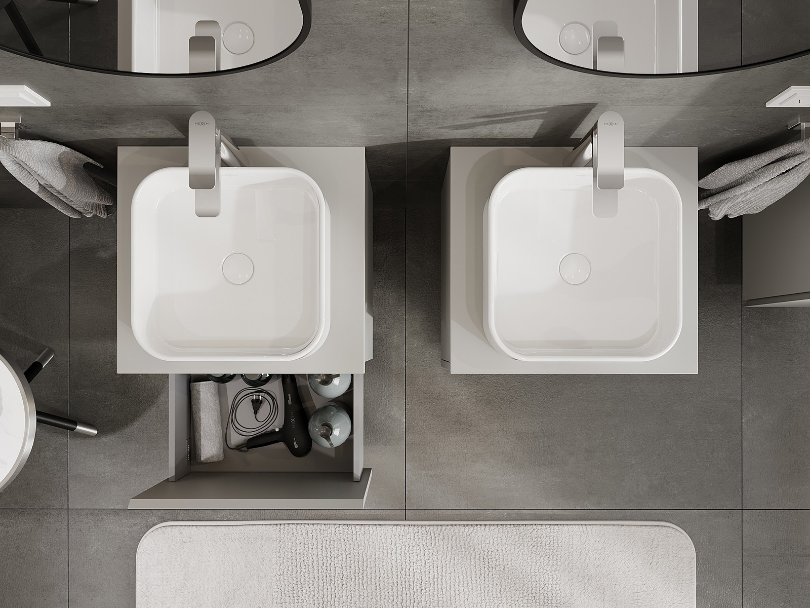 Our modular bathroom furniture can be combined in various colour configurations, allowing for complete personalisation. You can choose both the appearance and functions of individual elements, enabling you to adapt the furniture to your own stylistic and functional preferences.
