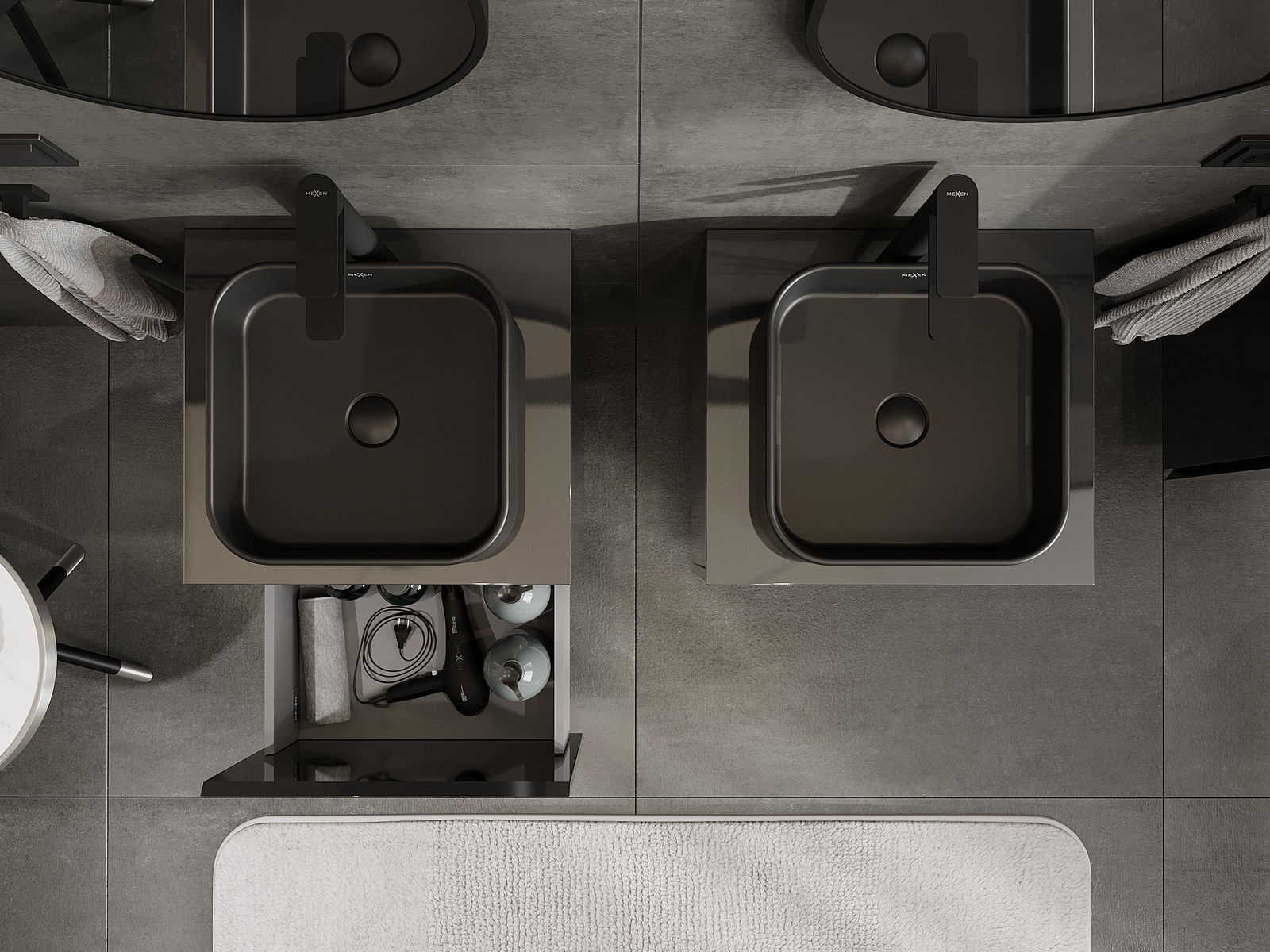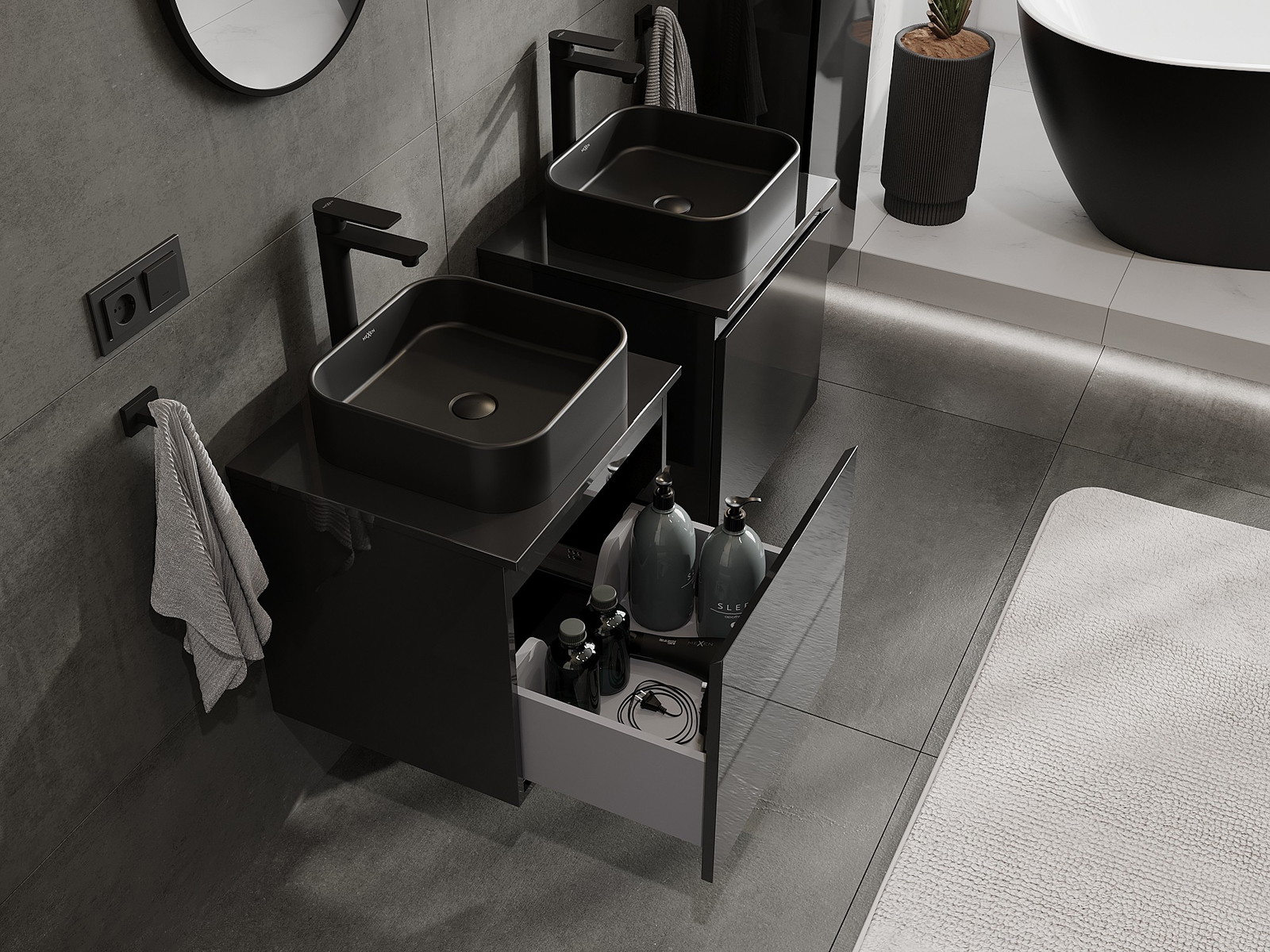 Mexen Orio bathroom under-sink cabinet 50 cm with countertop, 1 drawer, black gloss - 91A10-05047-1-BFC70