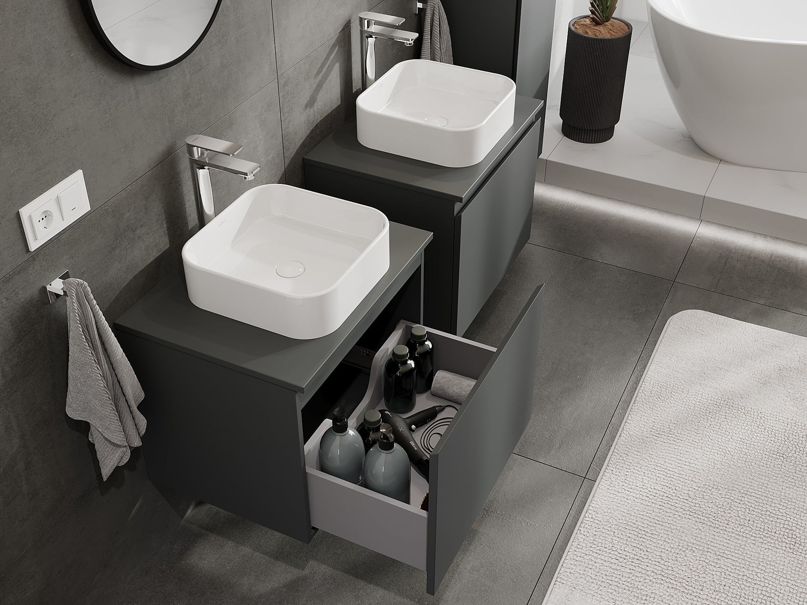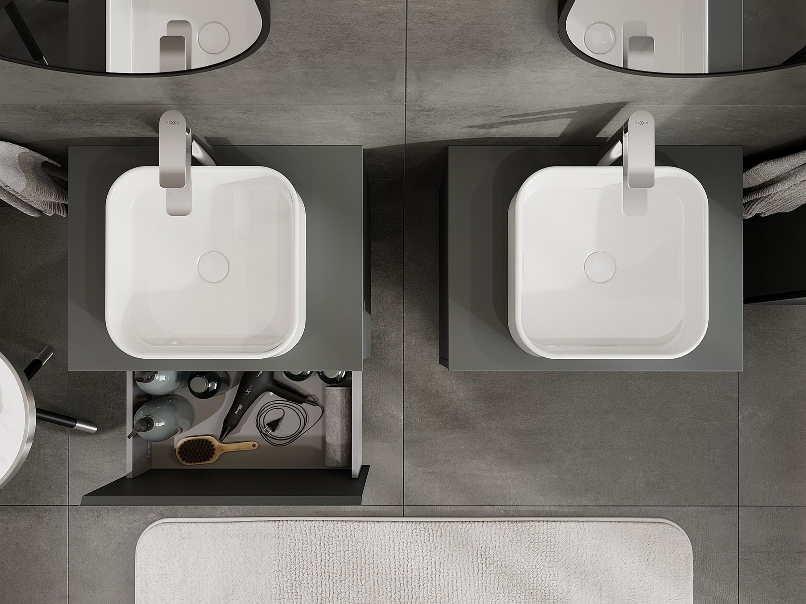Our modular bathroom furniture can be combined in various colour configurations, allowing for complete personalisation. You can choose both the appearance and functions of individual elements, enabling you to adapt the furniture to your own stylistic and functional preferences.