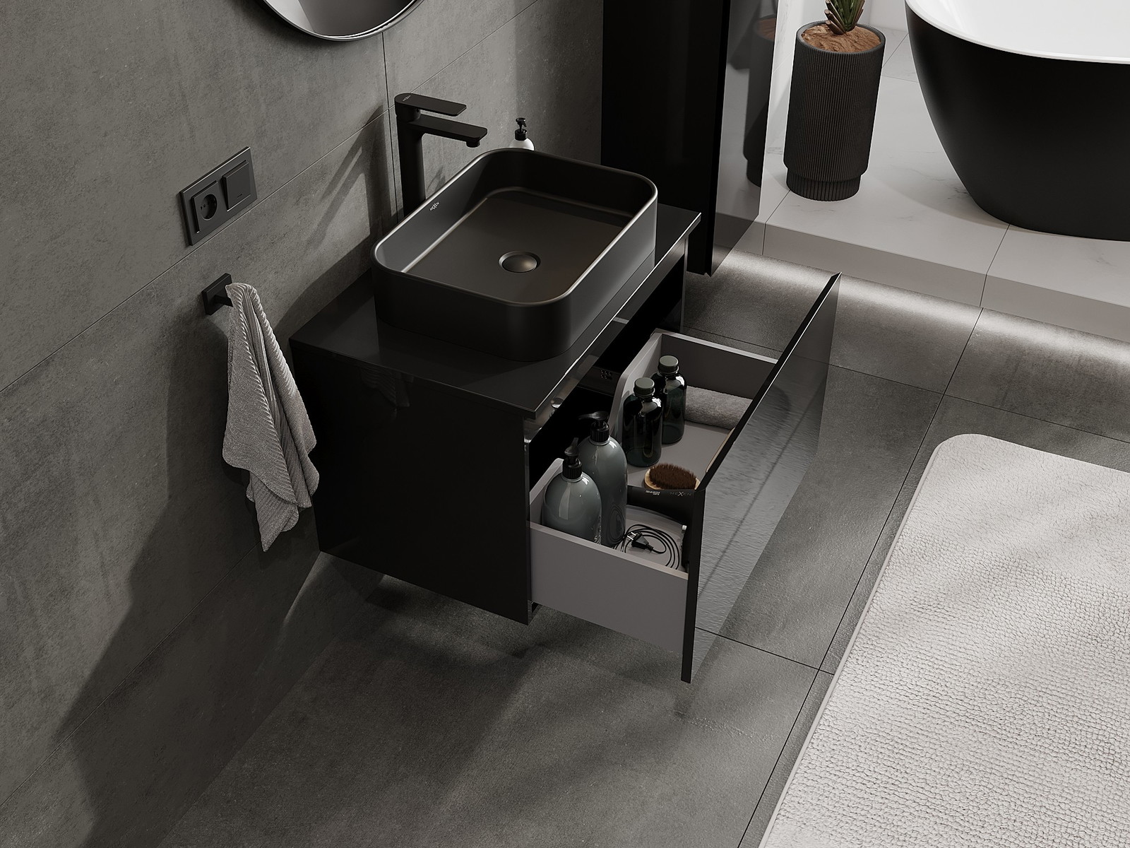 Our modular bathroom furniture can be combined in various colour configurations, allowing for complete personalisation. You can choose both the appearance and functions of individual elements, enabling you to adapt the furniture to your own stylistic and functional preferences.