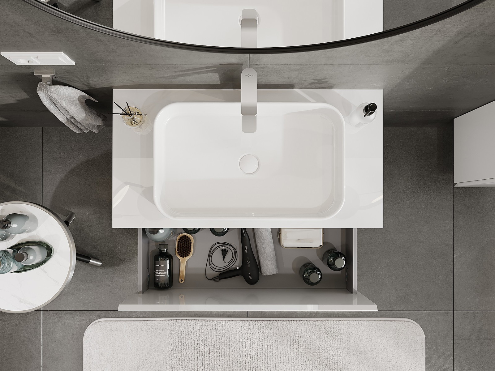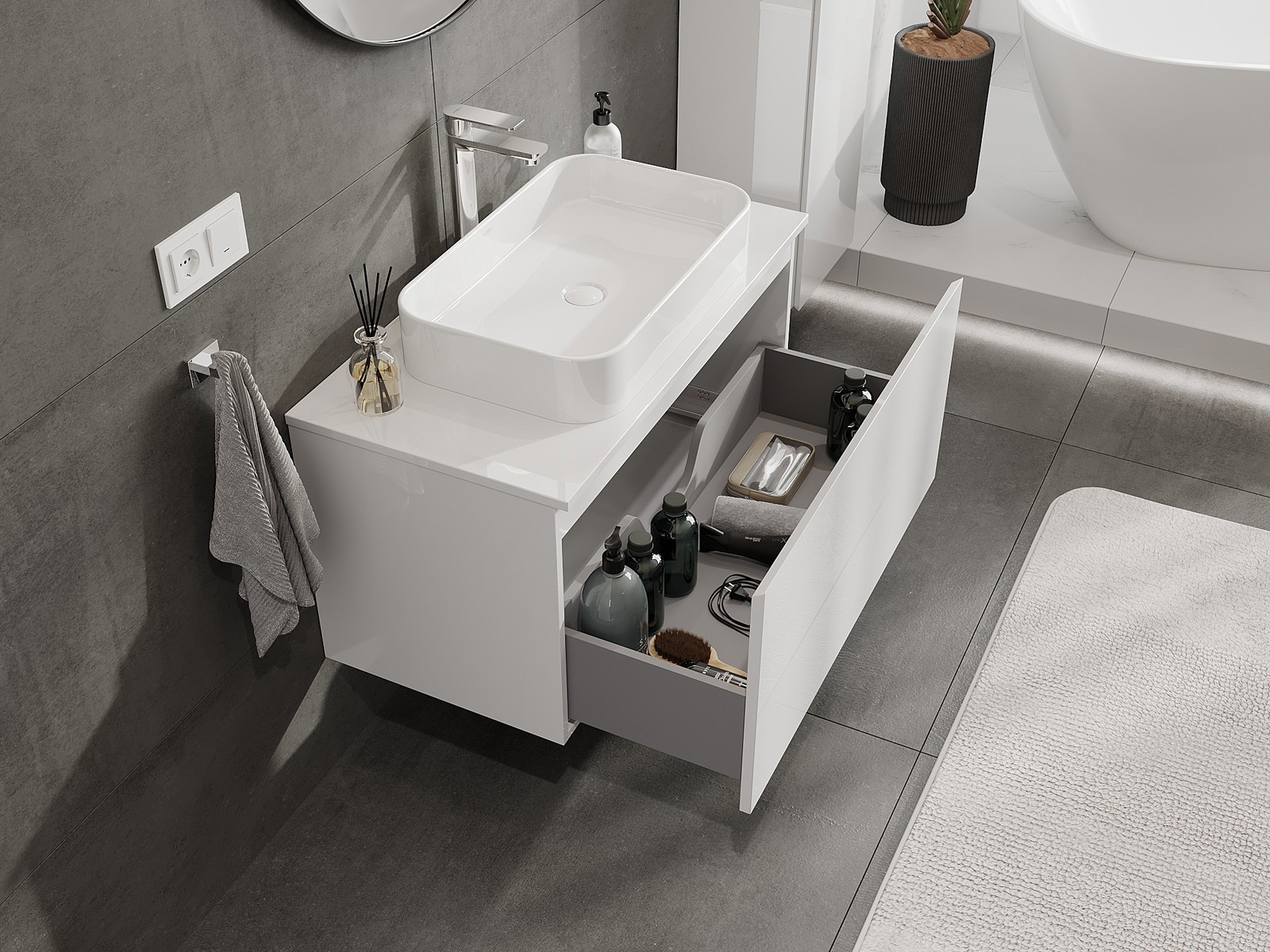 Our modular bathroom furniture can be combined in various colour configurations, allowing for complete personalisation. You can choose both the appearance and functions of individual elements, enabling you to adapt the furniture to your own stylistic and functional preferences.