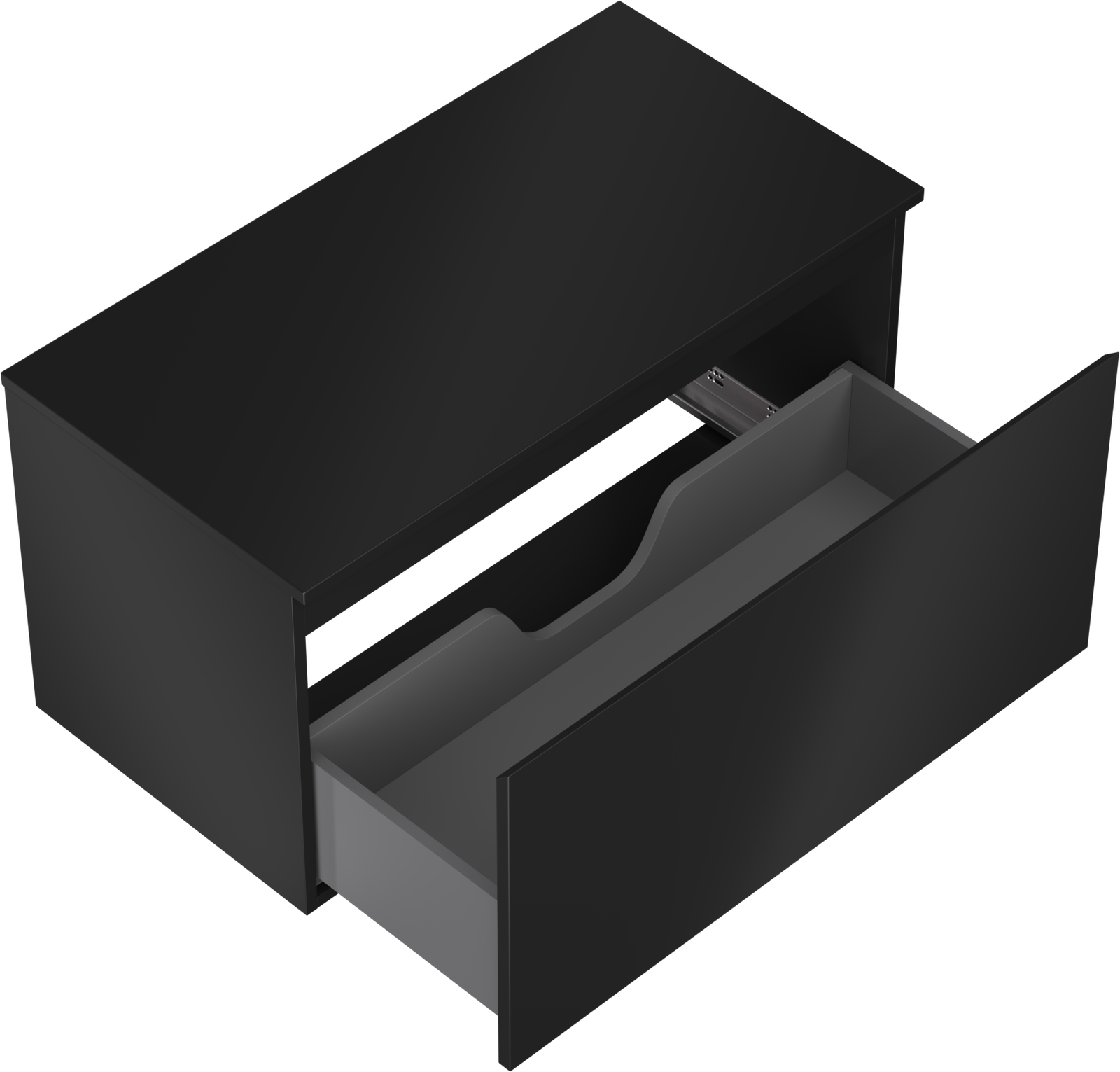 The cutout in the drawer is designed in such a way as to accommodate the siphon, which is essential in sink installations. This allows the furniture to be fully functional without having to give up drawer space for the installation.