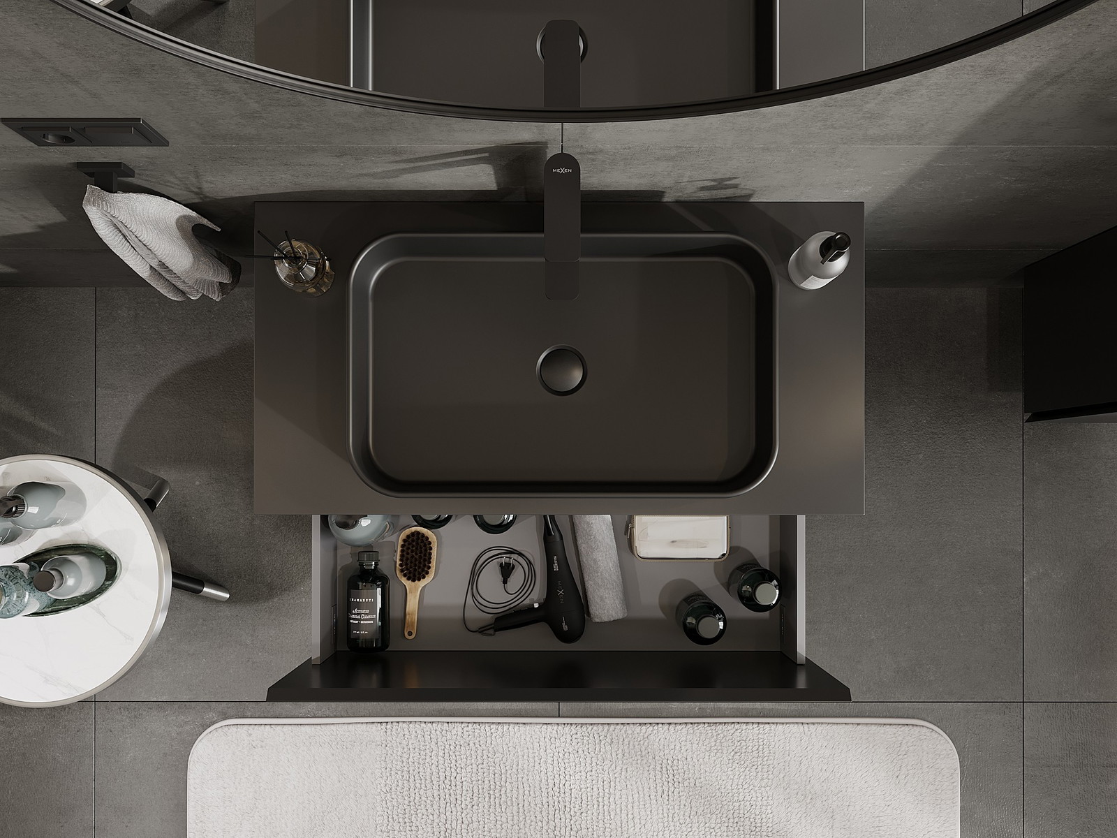 Our modular bathroom furniture can be combined in various colour configurations, allowing for complete personalisation. You can choose both the appearance and functions of individual elements, enabling you to adapt the furniture to your own stylistic and functional preferences.