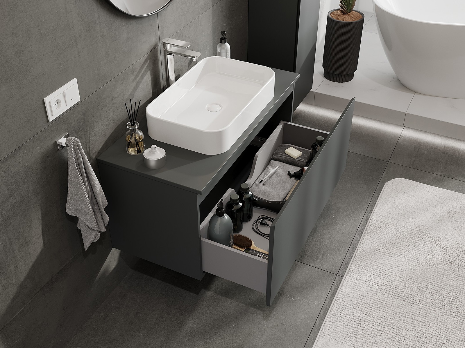 Our modular bathroom furniture can be combined in various colour configurations, allowing for complete personalisation. You can choose both the appearance and functions of individual elements, enabling you to adapt the furniture to your own stylistic and functional preferences.