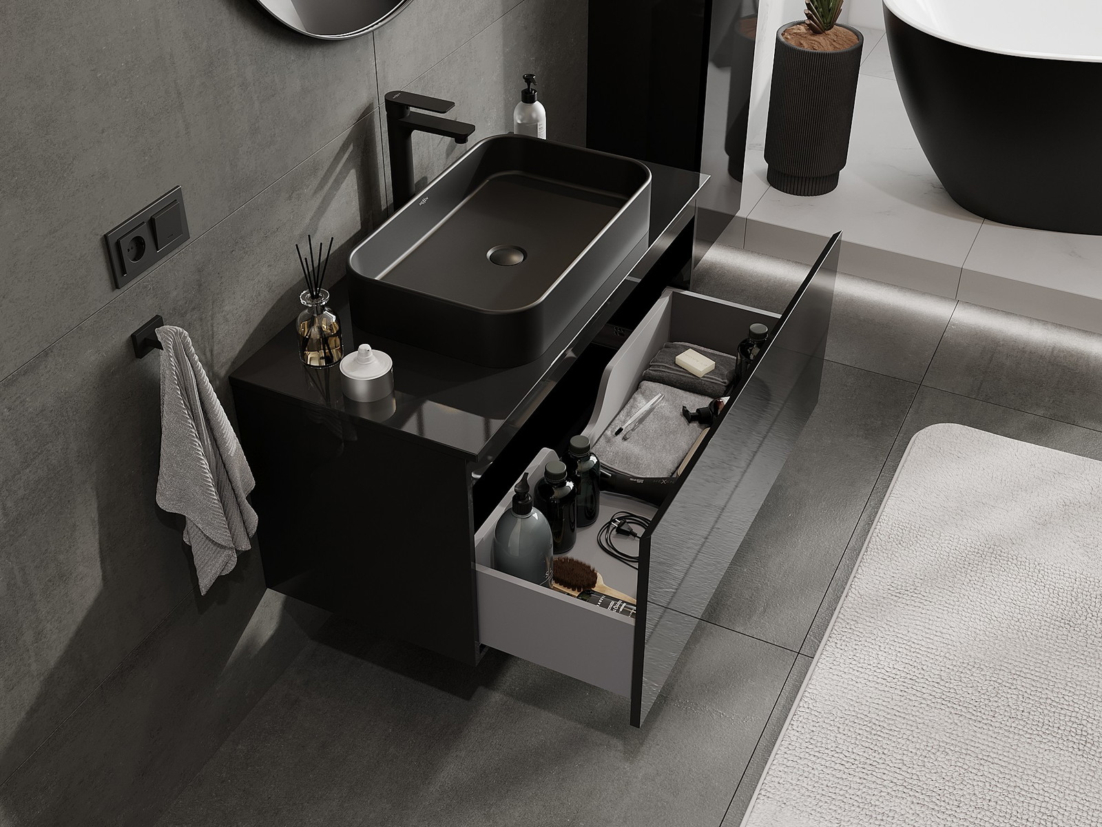 Our modular bathroom furniture can be combined in various colour configurations, allowing for complete personalisation. You can choose both the appearance and functions of individual elements, enabling you to adapt the furniture to your own stylistic and functional preferences.