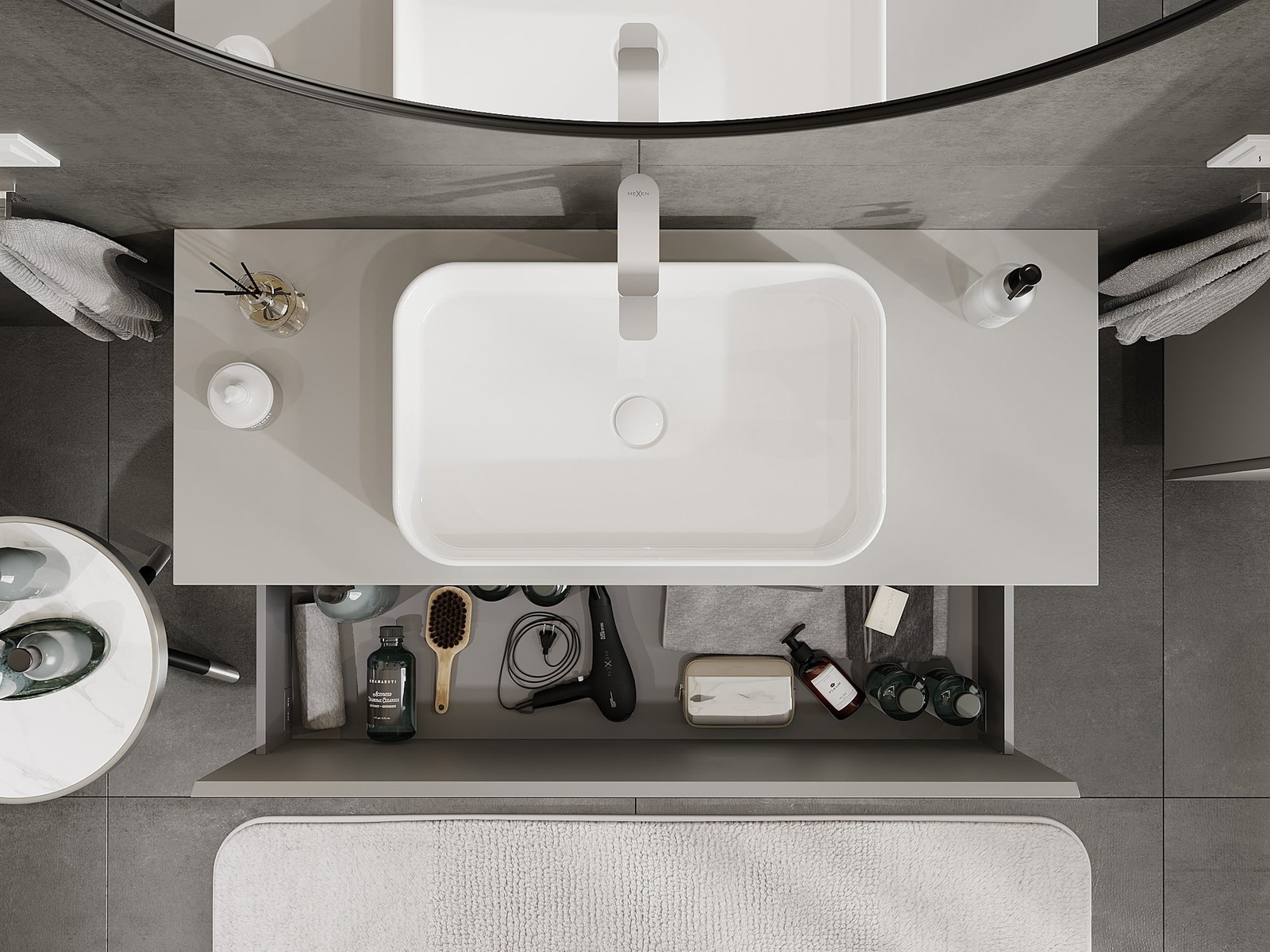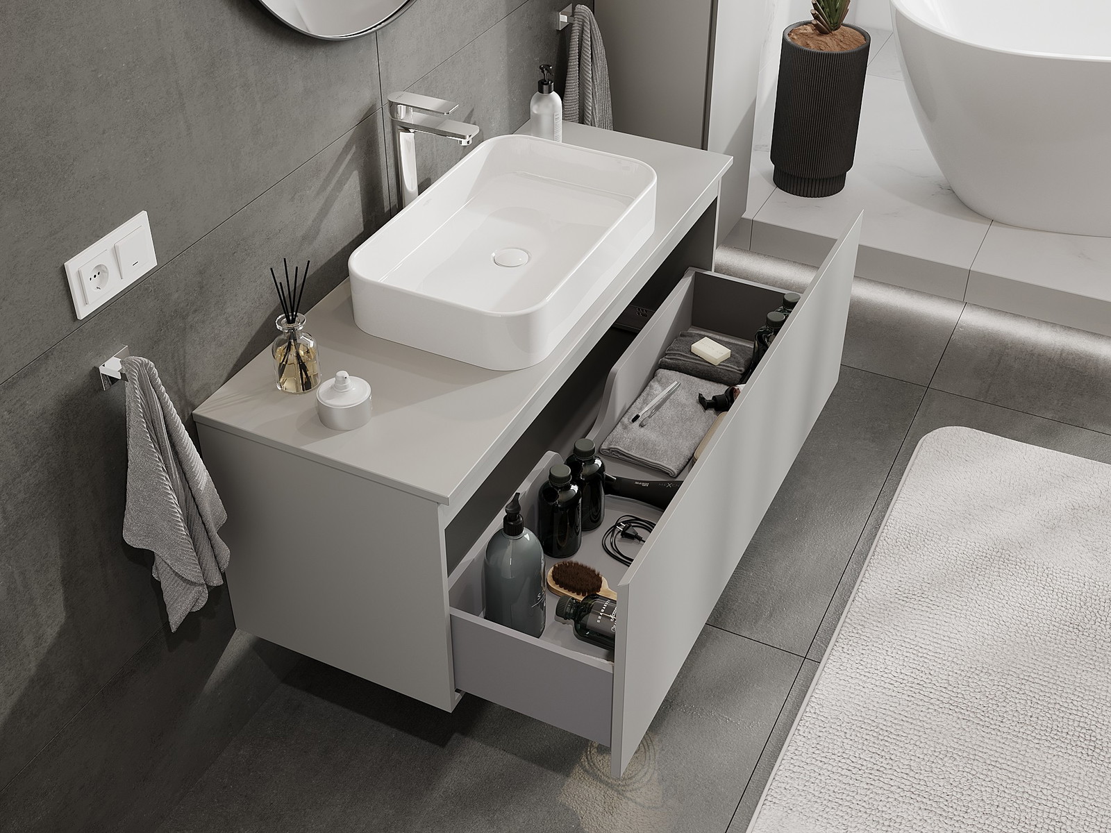 Our modular bathroom furniture can be combined in various colour configurations, allowing for complete personalisation. You can choose both the appearance and functions of individual elements, enabling you to adapt the furniture to your own stylistic and functional preferences.