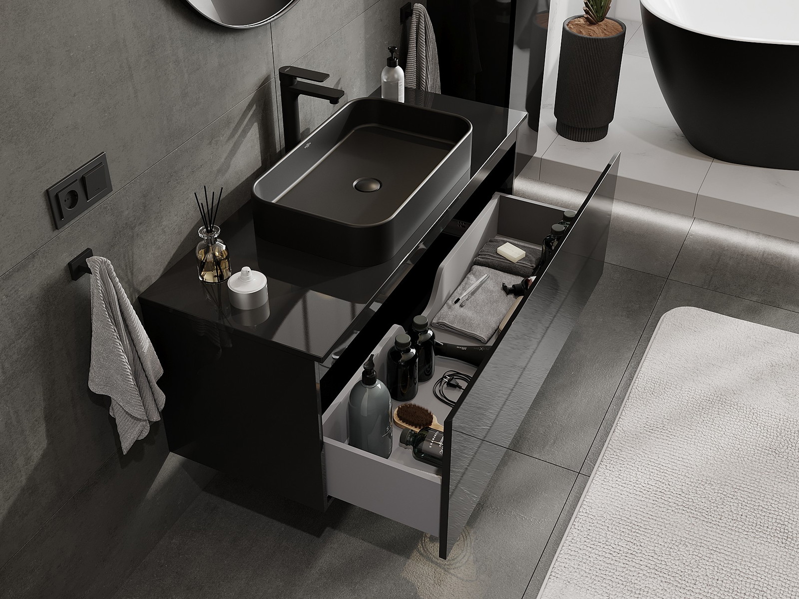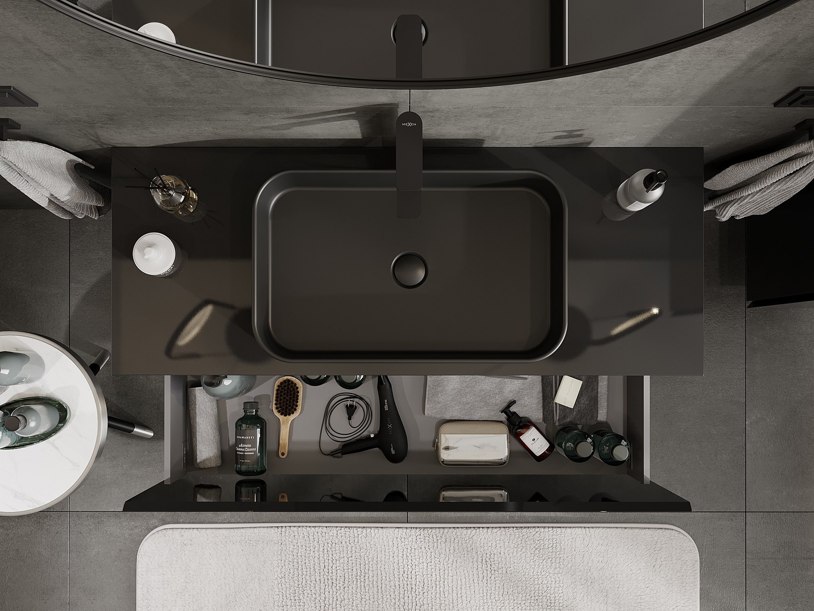 Our modular bathroom furniture can be combined in various colour configurations, allowing for complete personalisation. You can choose both the appearance and functions of individual elements, enabling you to adapt the furniture to your own stylistic and functional preferences.