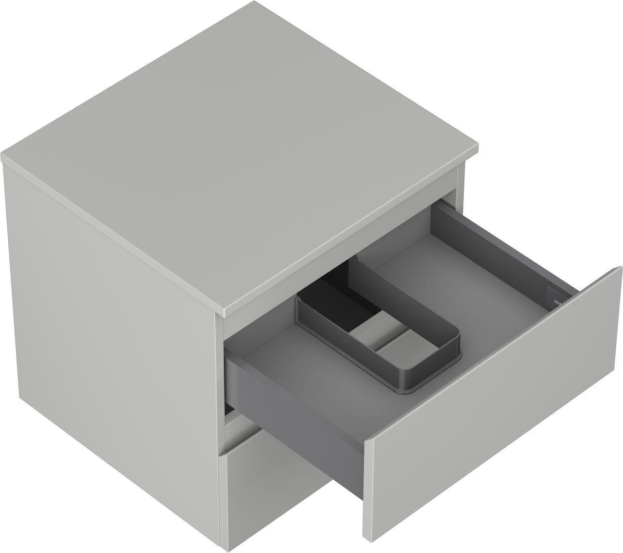 The cutout in the drawer is designed in such a way as to accommodate the siphon, which is essential in sink installations. This allows the furniture to be fully functional without having to give up drawer space for the installation.