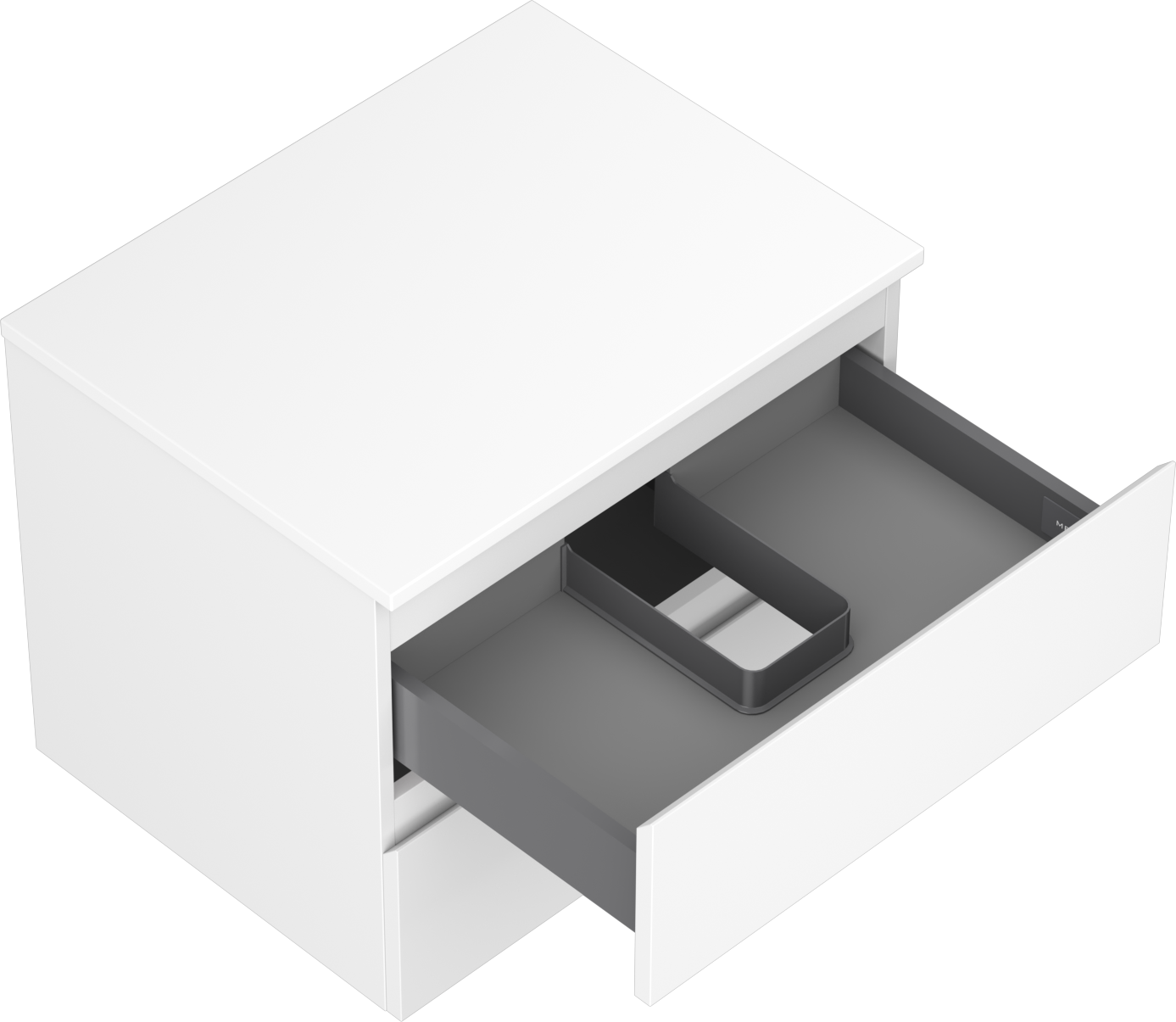 The cutout in the drawer is designed in such a way as to accommodate the siphon, which is essential in sink installations. This allows the furniture to be fully functional without having to give up drawer space for the installation.