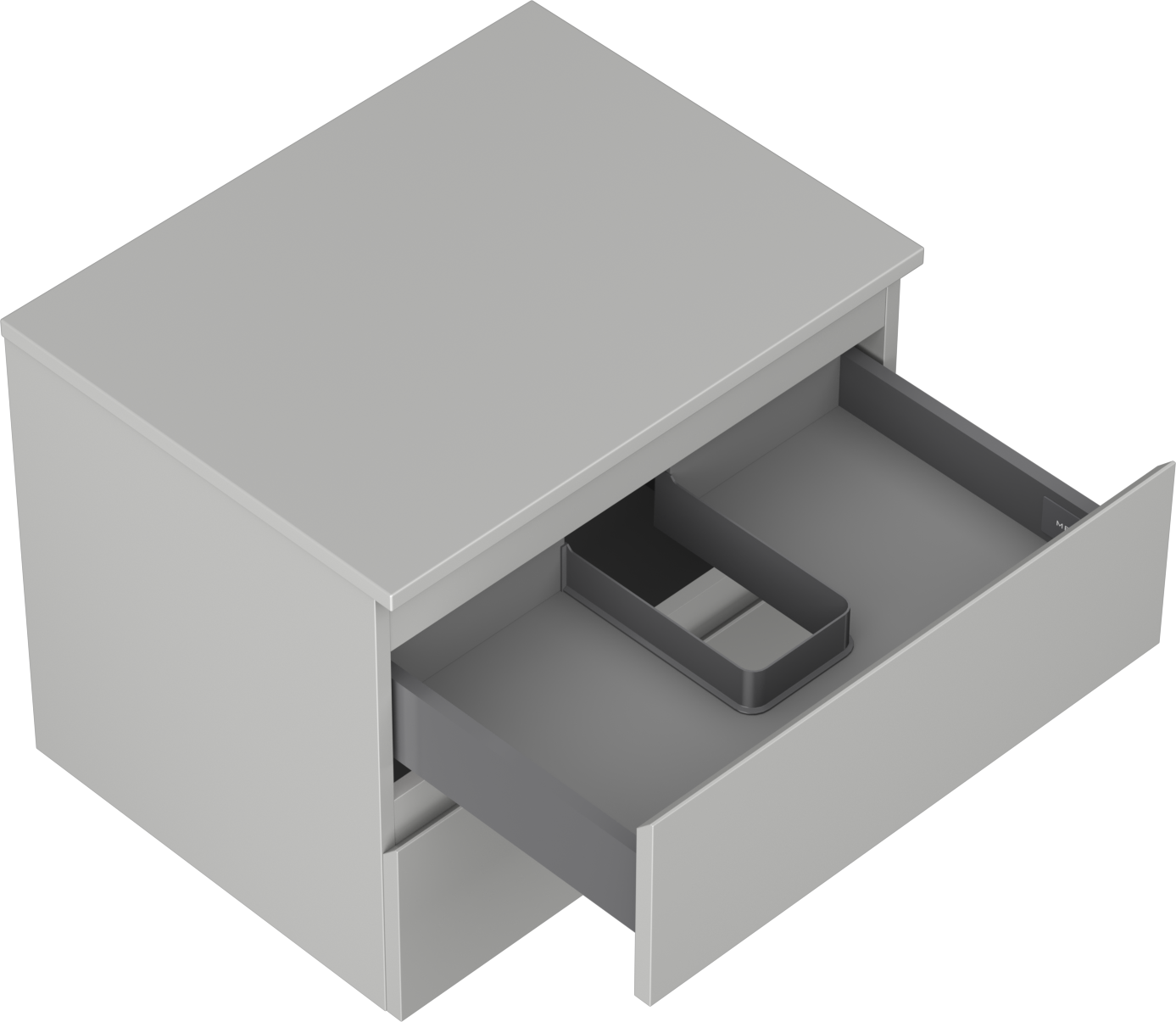 The cutout in the drawer is designed in such a way as to accommodate the siphon, which is essential in sink installations. This allows the furniture to be fully functional without having to give up drawer space for the installation.