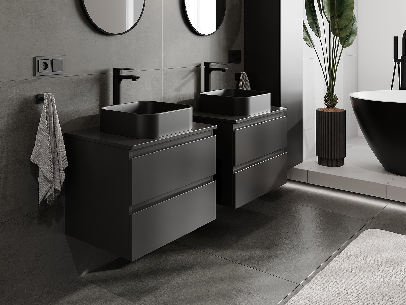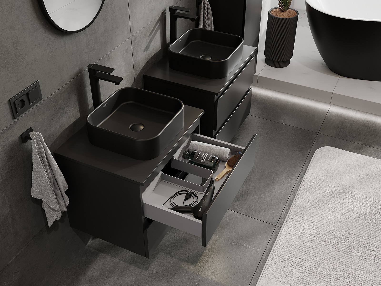 Our modular bathroom furniture can be combined in various colour configurations, allowing for complete personalisation. You can choose both the appearance and functions of individual elements, enabling you to adapt the furniture to your own stylistic and functional preferences.