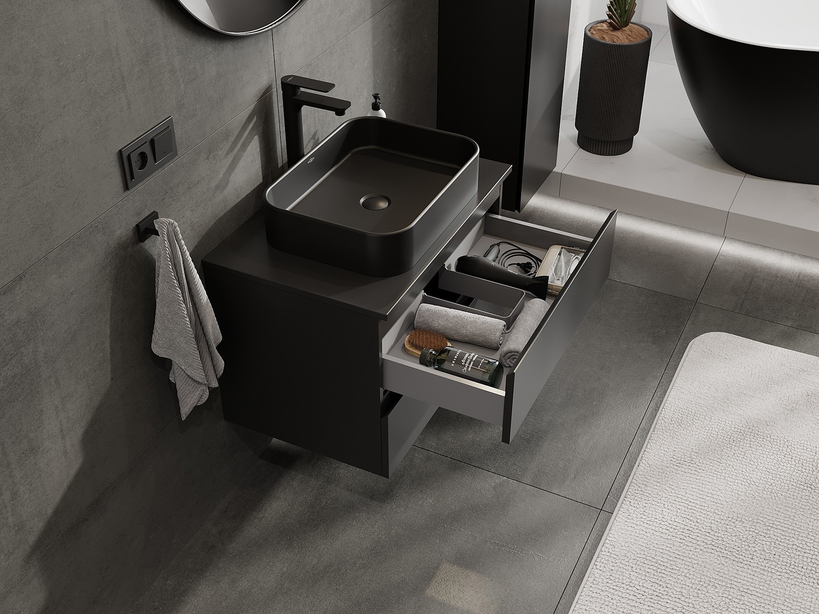 The cabinet carcass is delivered fully assembled, which means maximum convenience and time savings. You don't have to spend hours assembling the furniture – just install it in your chosen spot in the bathroom. This is an ideal solution for those who appreciate quick assembly and immediate results.