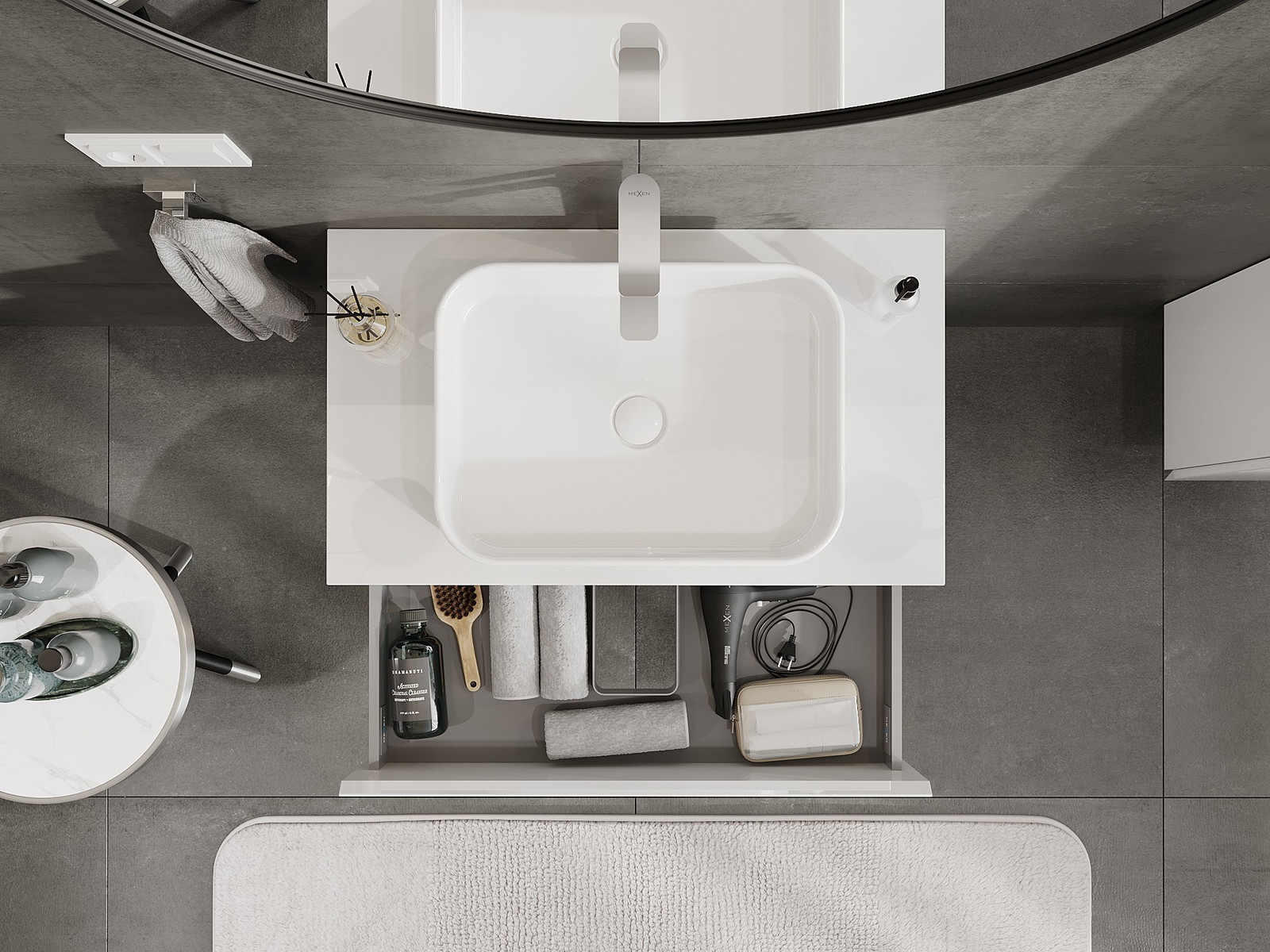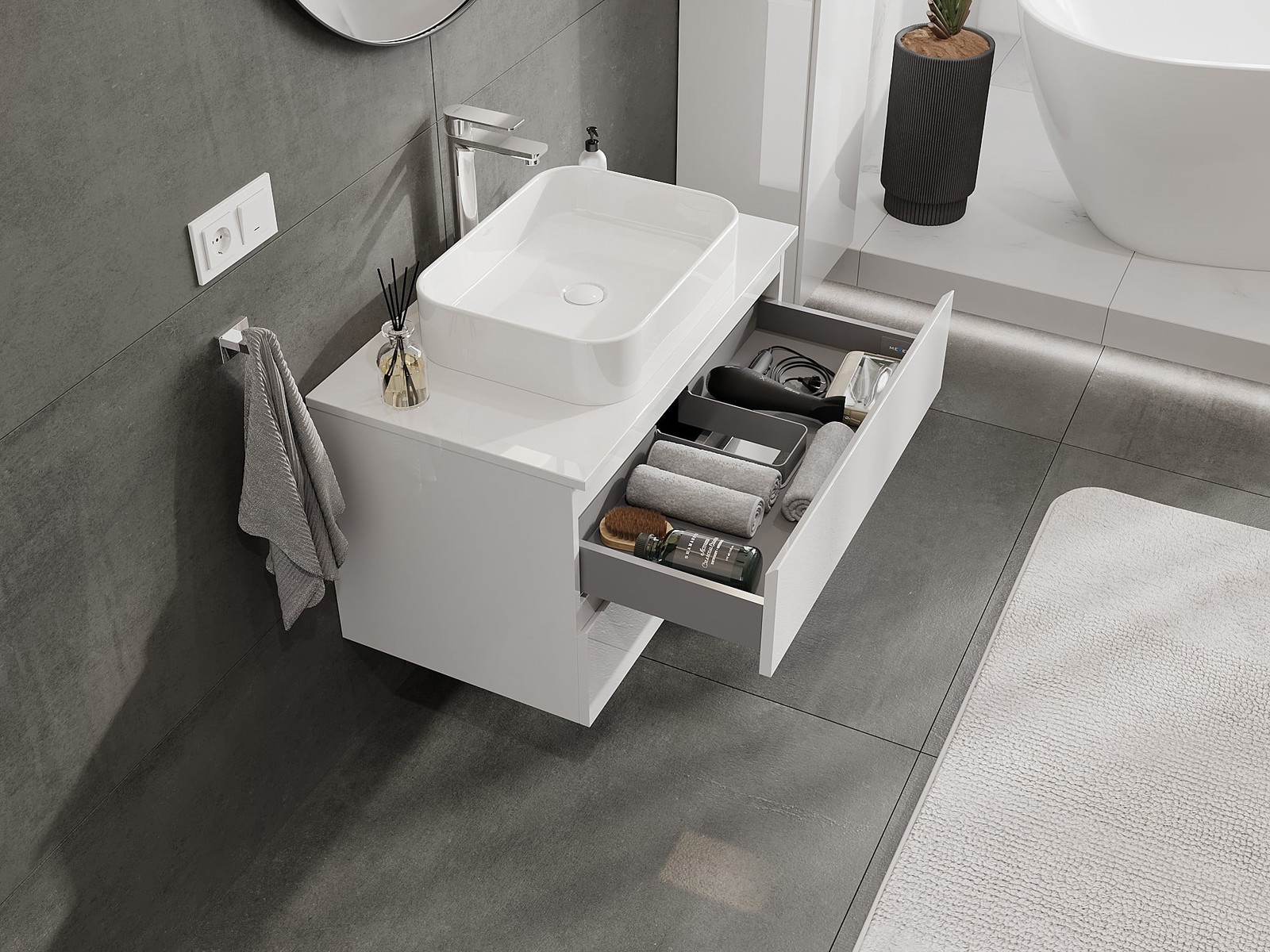 Our modular bathroom furniture can be combined in various colour configurations, allowing for complete personalisation. You can choose both the appearance and functions of individual elements, enabling you to adapt the furniture to your own stylistic and functional preferences.