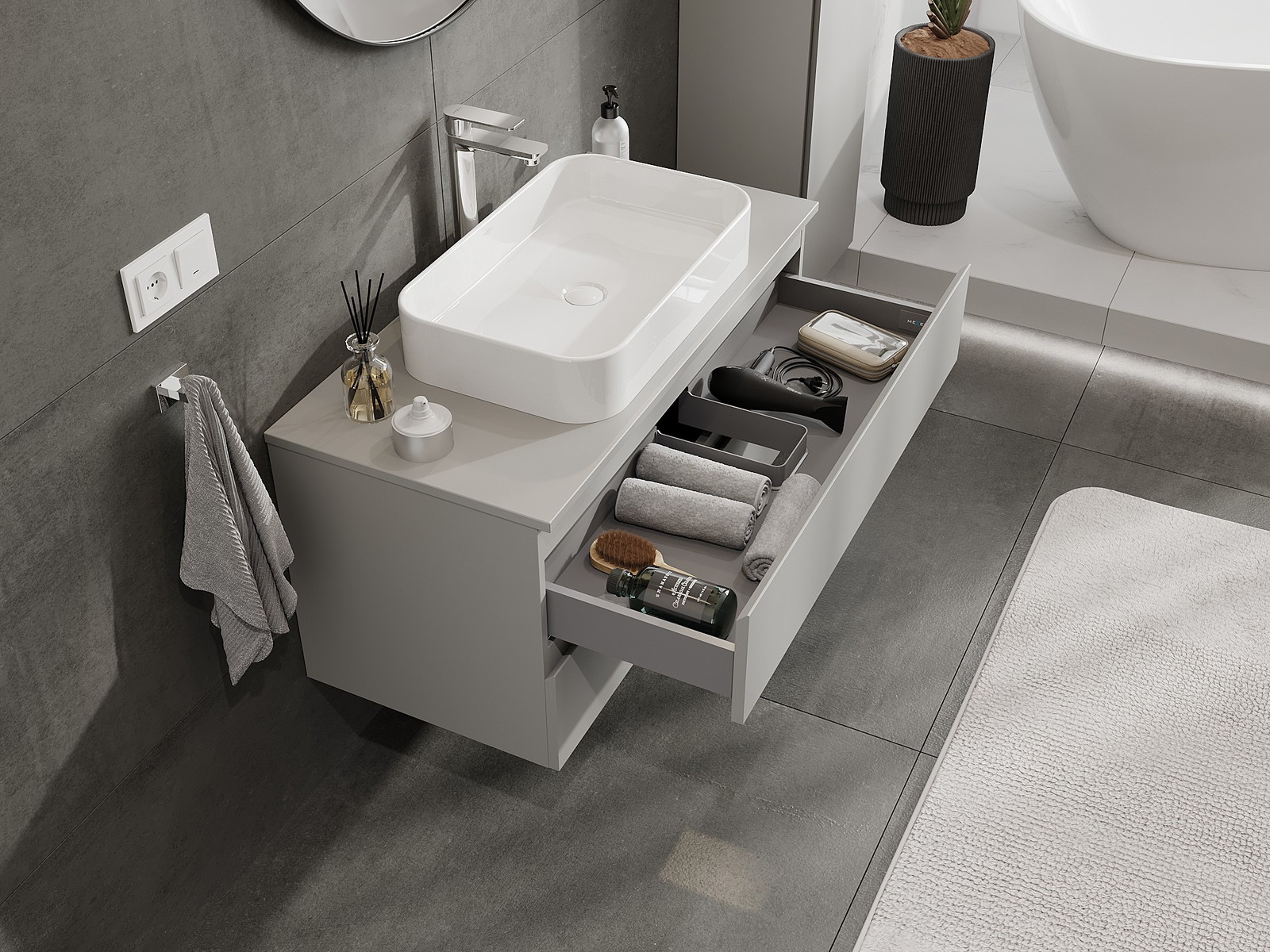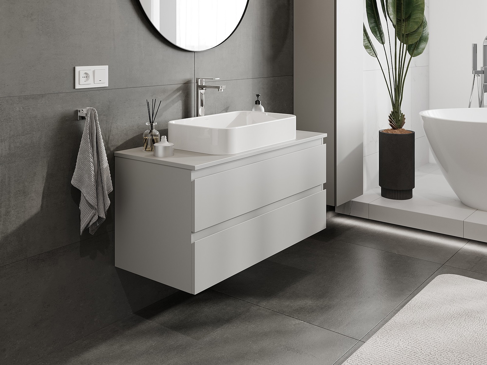 Our modular bathroom furniture can be combined in various colour configurations, allowing for complete personalisation. You can choose both the appearance and functions of individual elements, enabling you to adapt the furniture to your own stylistic and functional preferences.