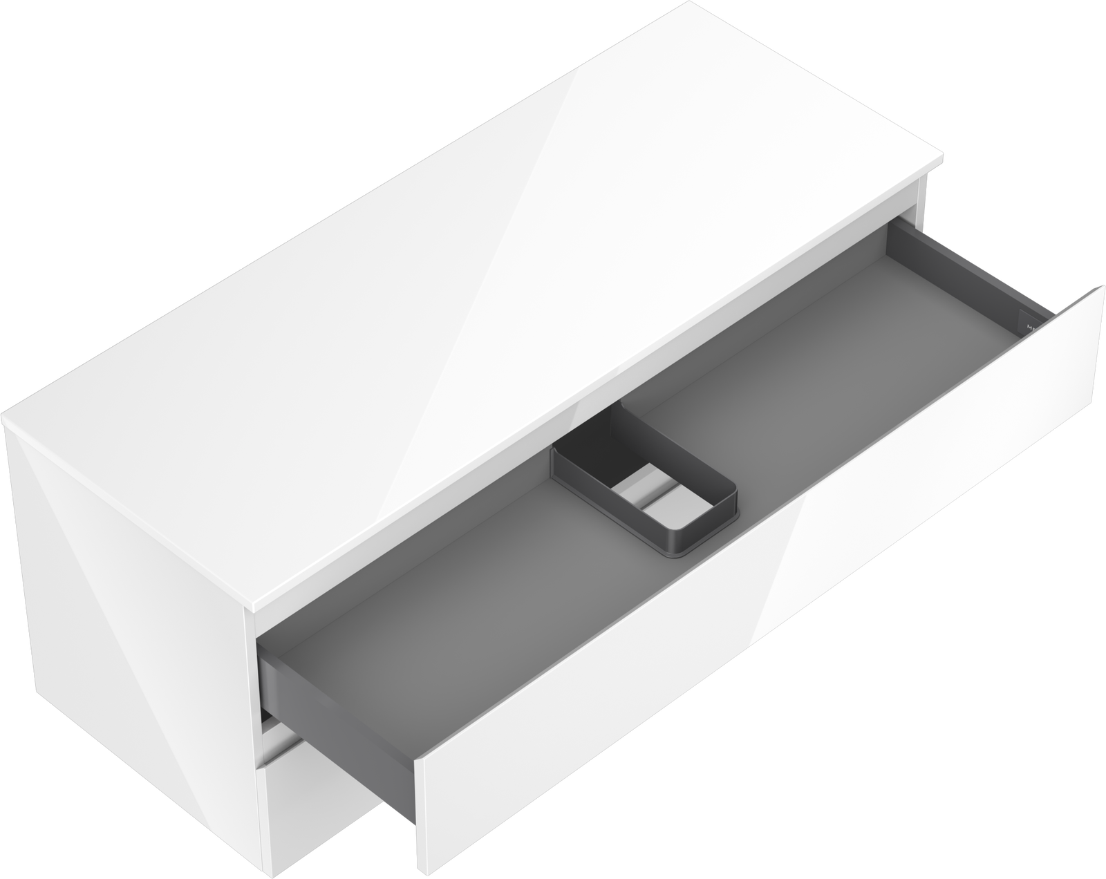 The cutout in the drawer is designed in such a way as to accommodate the siphon, which is essential in sink installations. This allows the furniture to be fully functional without having to give up drawer space for the installation.