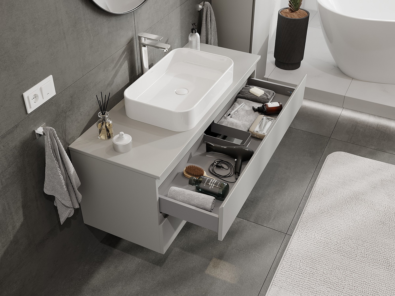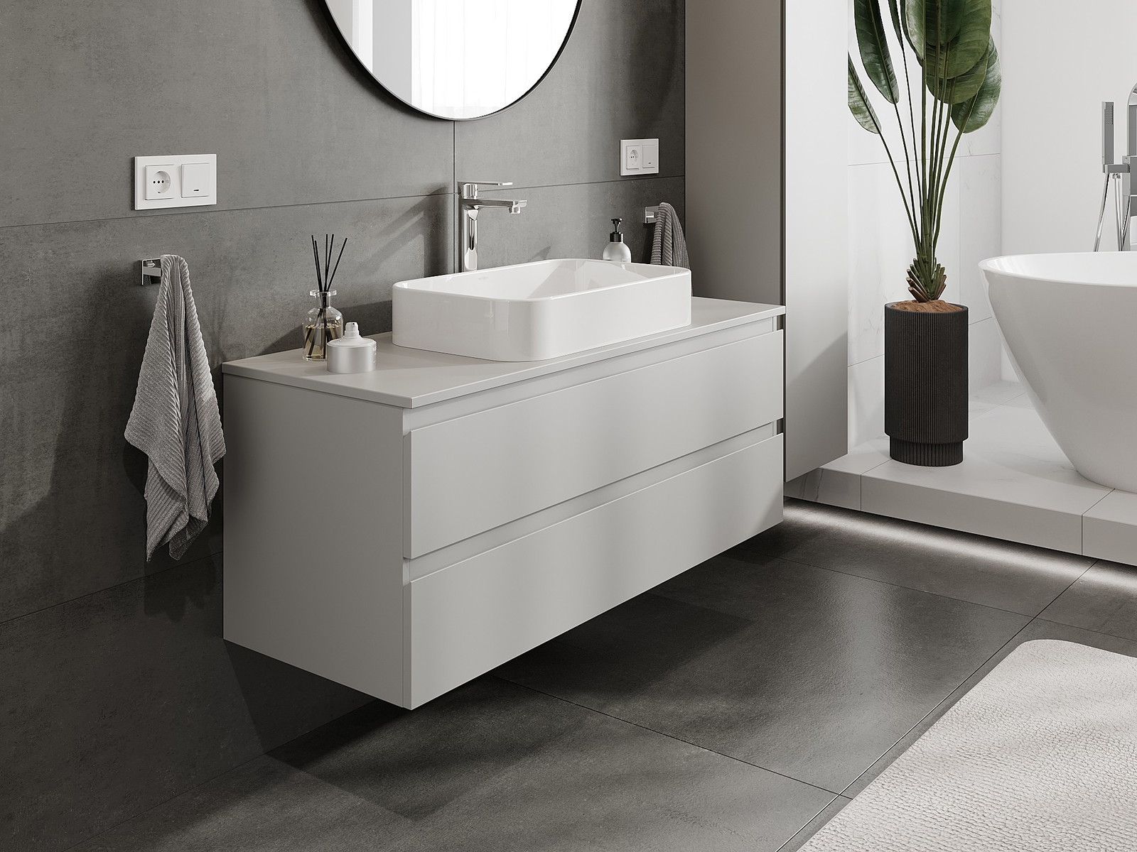 Our modular bathroom furniture can be combined in various colour configurations, allowing for complete personalisation. You can choose both the appearance and functions of individual elements, enabling you to adapt the furniture to your own stylistic and functional preferences.