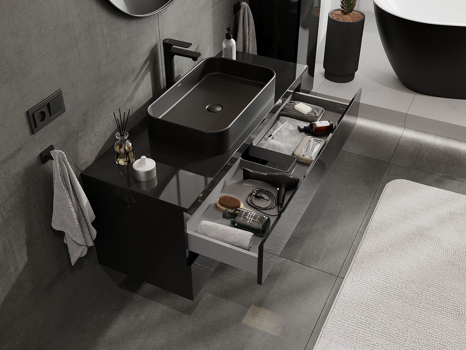 Our modular bathroom furniture can be combined in various colour configurations, allowing for complete personalisation. You can choose both the appearance and functions of individual elements, enabling you to adapt the furniture to your own stylistic and functional preferences.