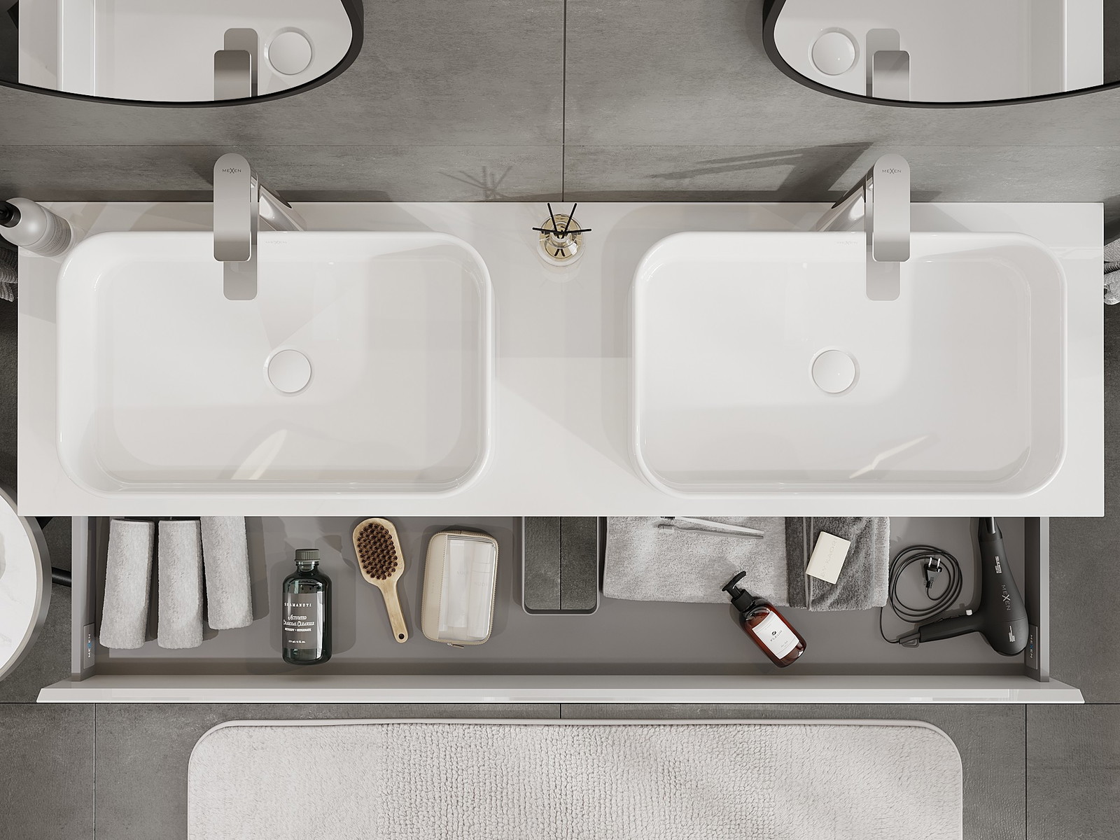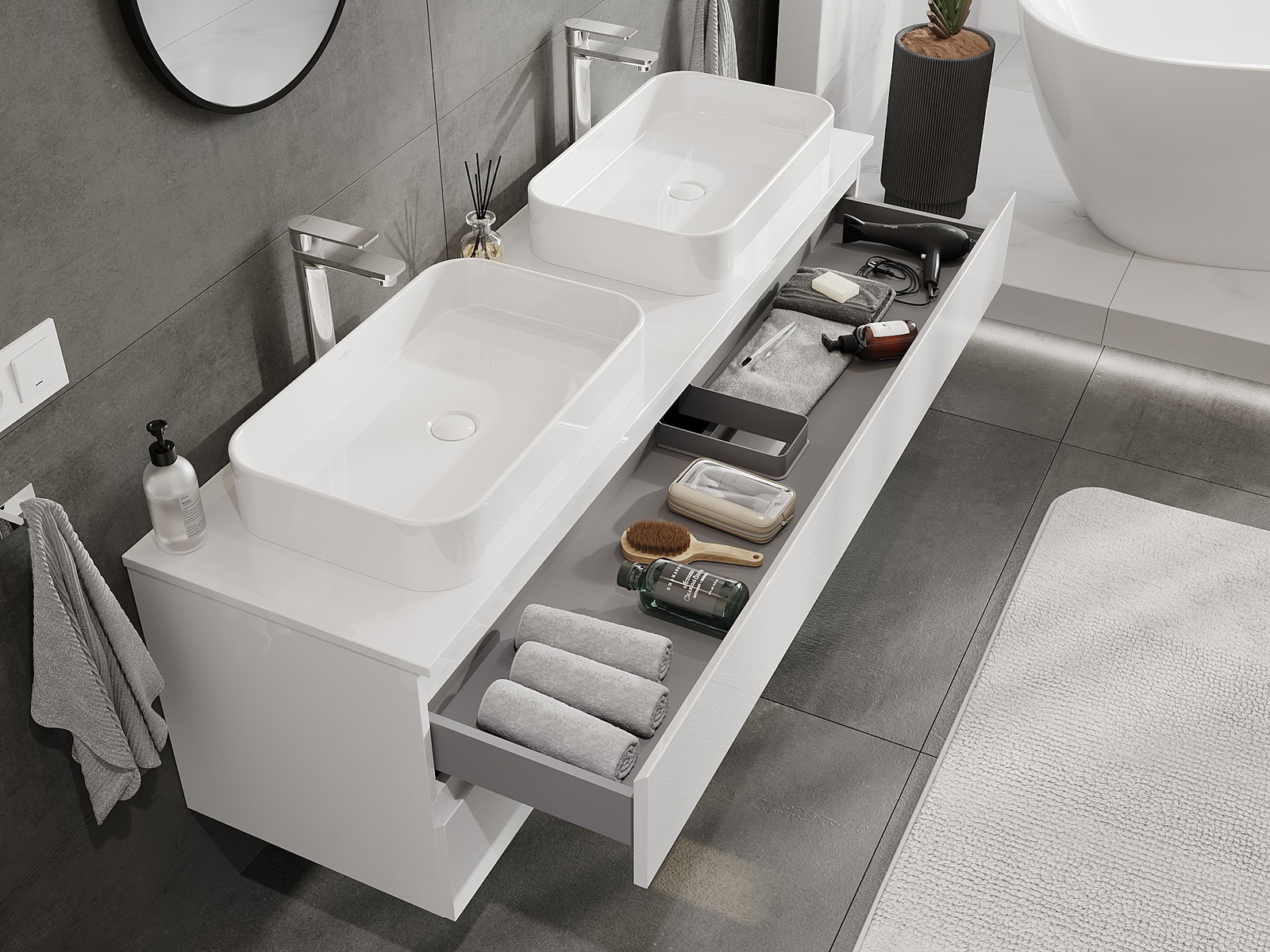 Our modular bathroom furniture can be combined in various colour configurations, allowing for complete personalisation. You can choose both the appearance and functions of individual elements, enabling you to adapt the furniture to your own stylistic and functional preferences.