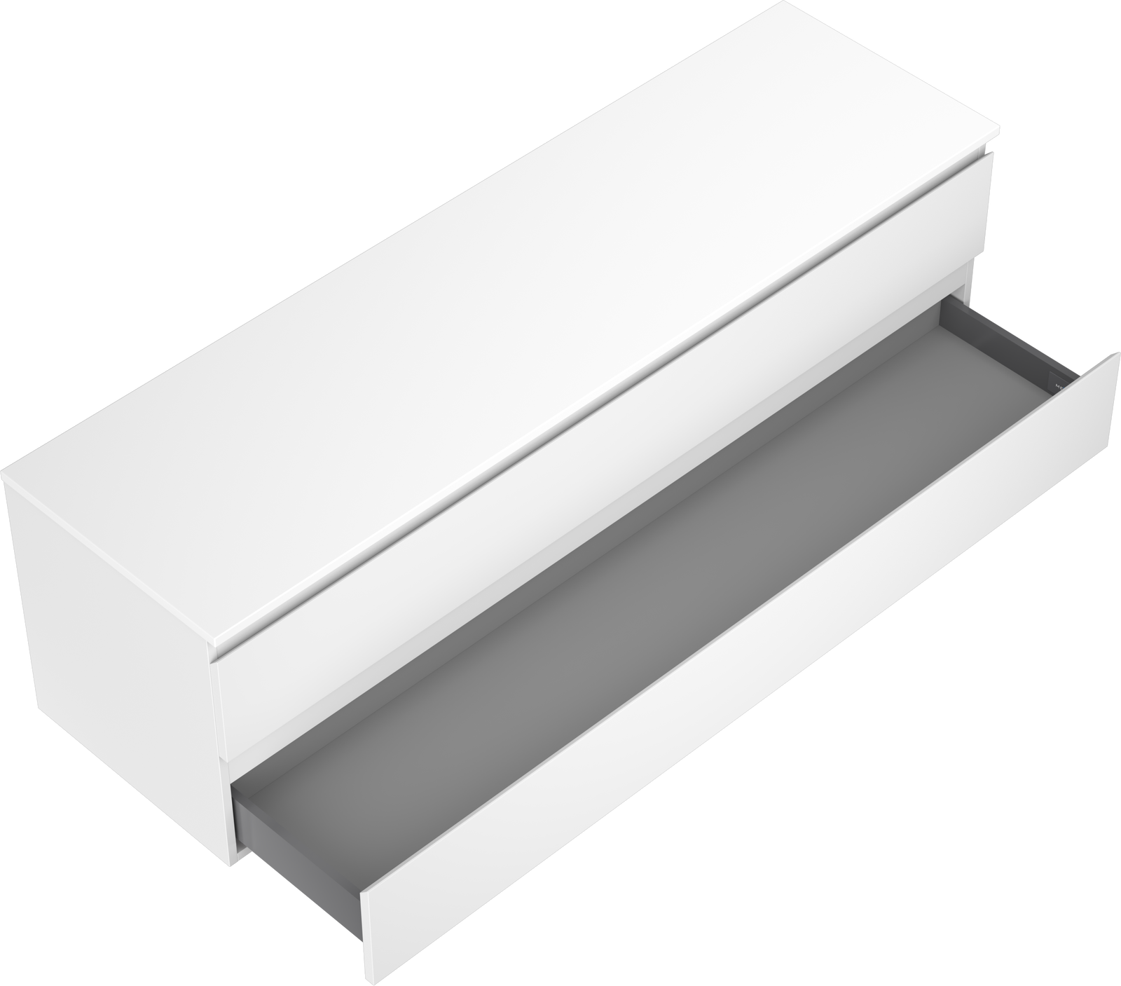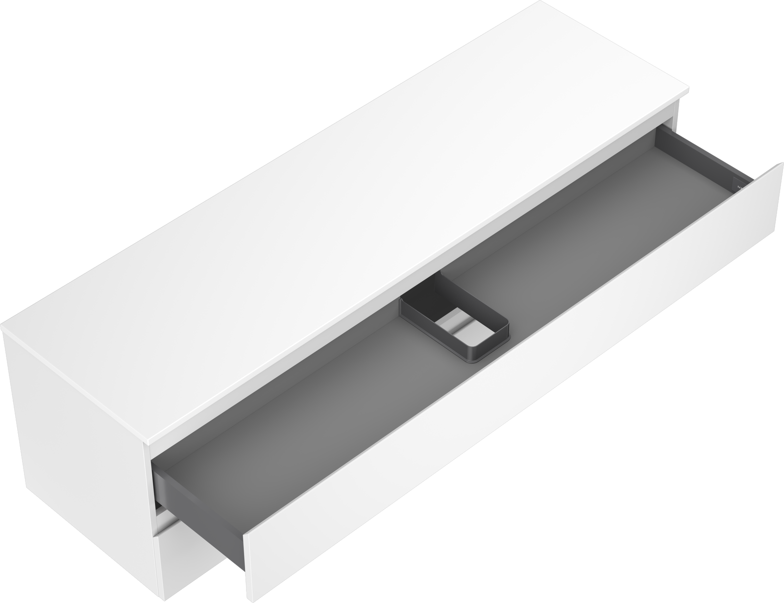 The cutout in the drawer is designed in such a way as to accommodate the siphon, which is essential in sink installations. This allows the furniture to be fully functional without having to give up drawer space for the installation.