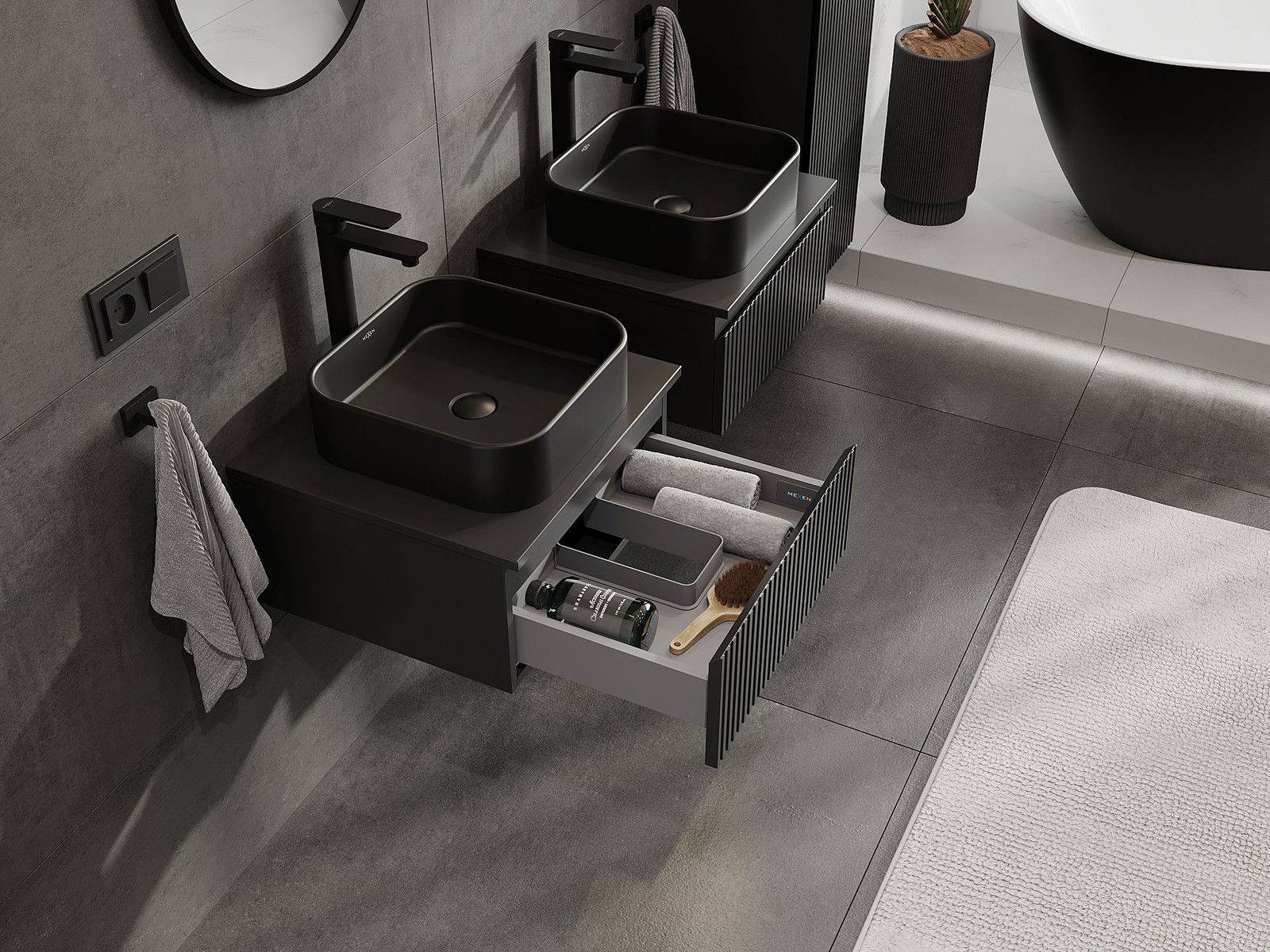 Mexen Rivel bathroom cabinet under washbasin 50 cm with top, 1 drawer, grooved, matte black - 91A20-05023-1-BFC71