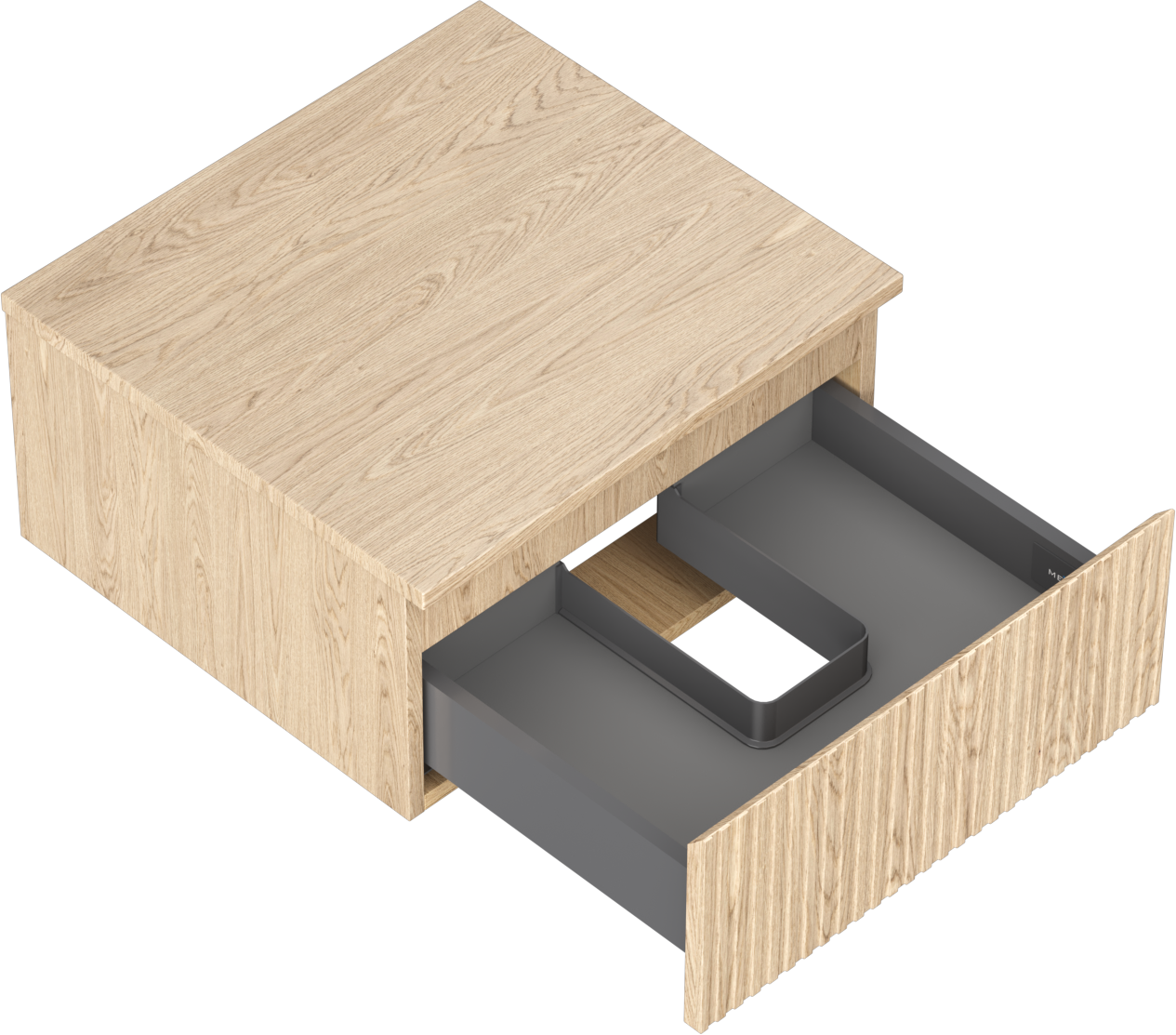 The cutout in the drawer is designed in such a way as to accommodate the siphon, which is essential in sink installations. This allows the furniture to be fully functional without having to give up drawer space for the installation.