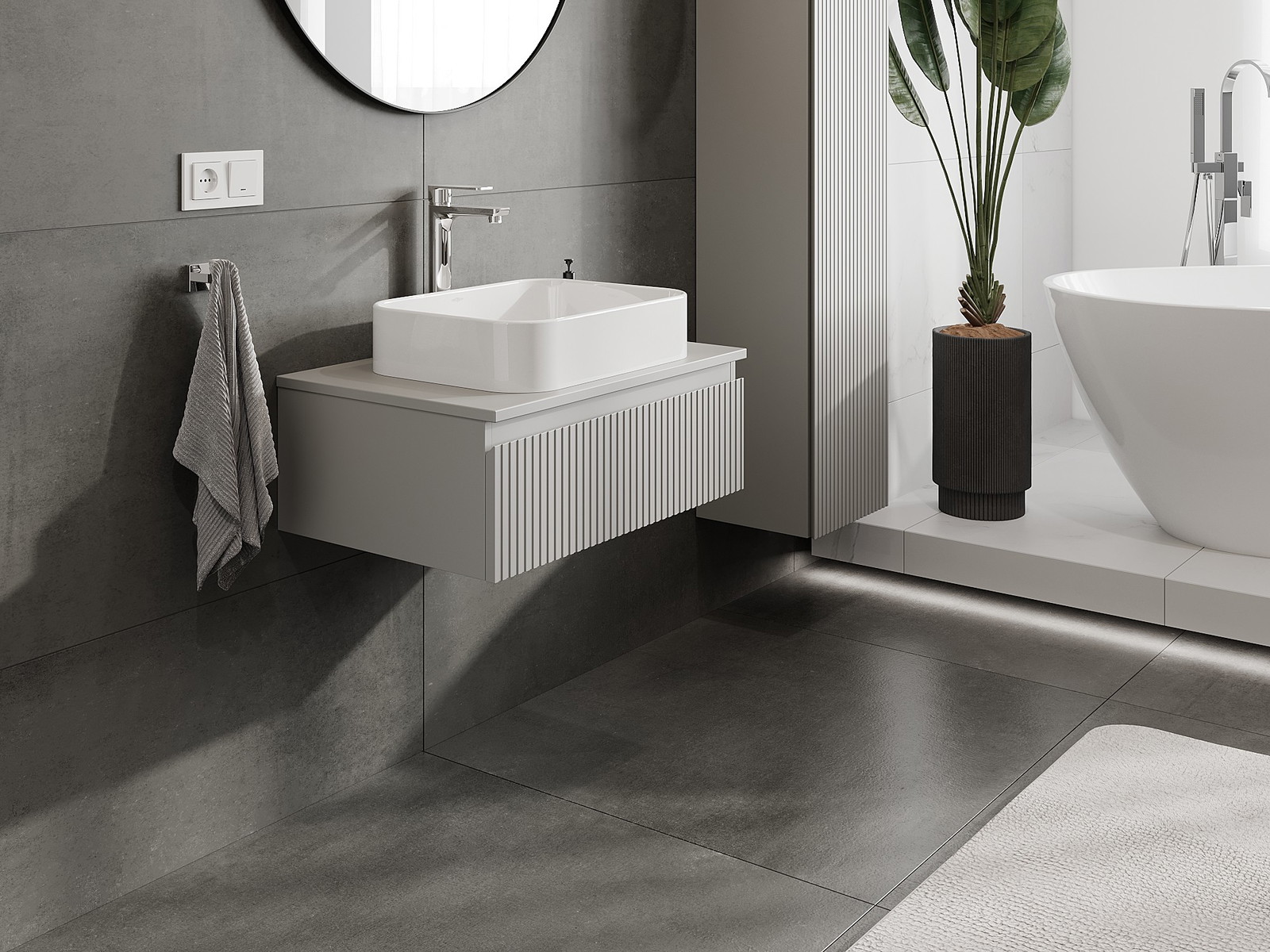 Our modular bathroom furniture can be combined in various colour configurations, allowing for complete personalisation. You can choose both the appearance and functions of individual elements, enabling you to adapt the furniture to your own stylistic and functional preferences.