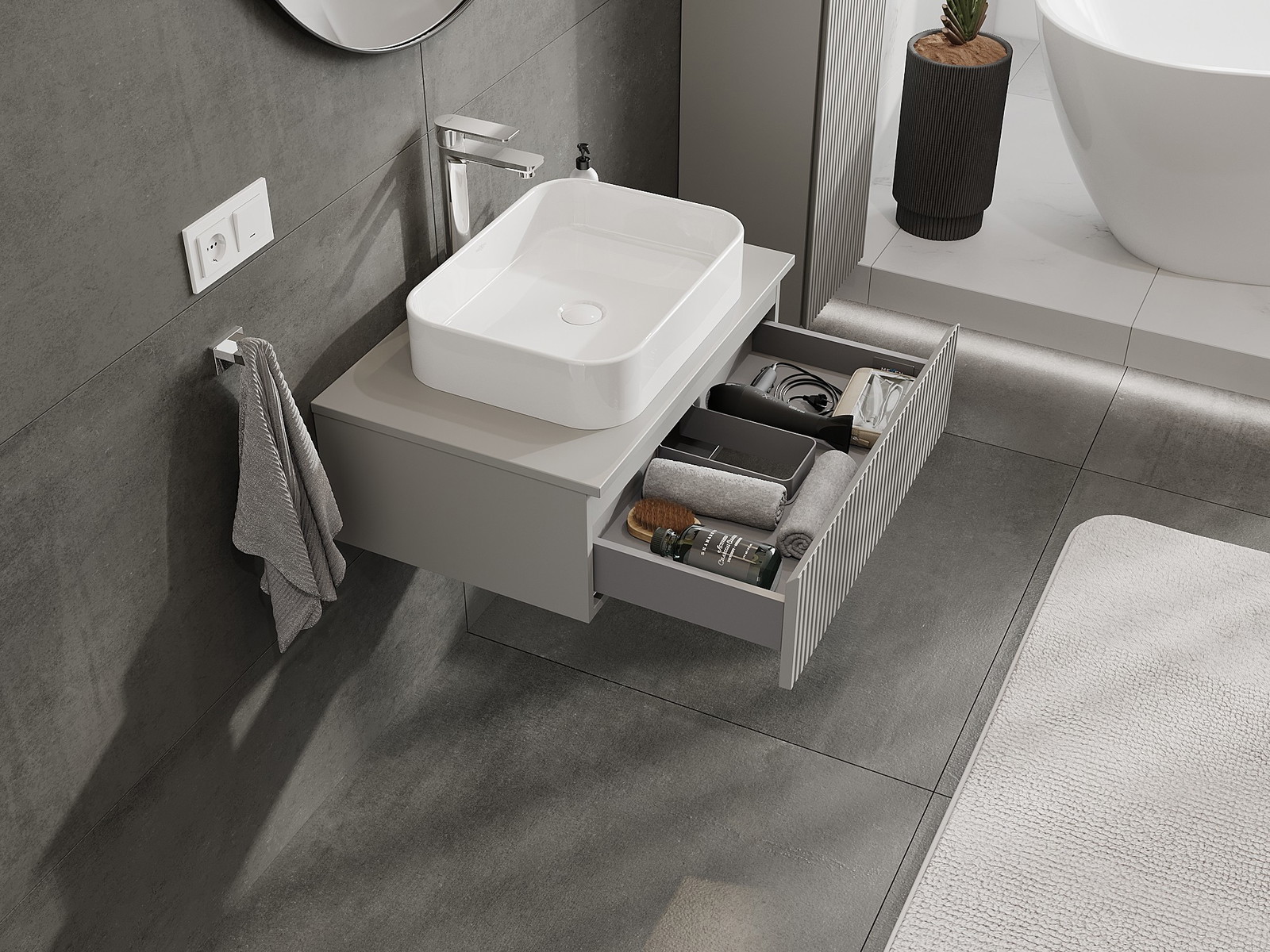 Mexen Rivel bathroom cabinet under-sink 70 cm with countertop, 1 drawer, ribbed, grey matte - 91A20-07023-1-BFC62