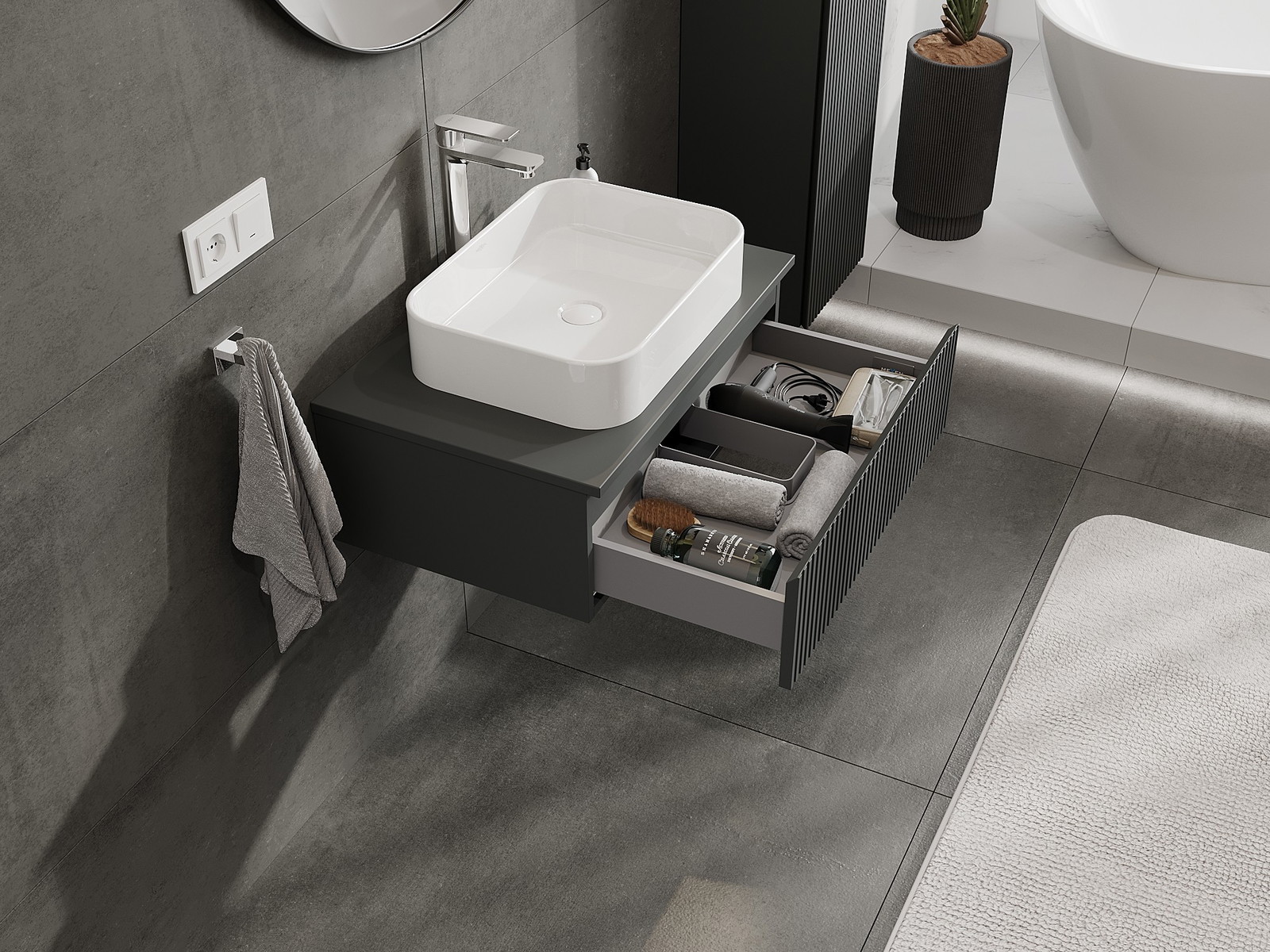 Our modular bathroom furniture can be combined in various colour configurations, allowing for complete personalisation. You can choose both the appearance and functions of individual elements, enabling you to adapt the furniture to your own stylistic and functional preferences.