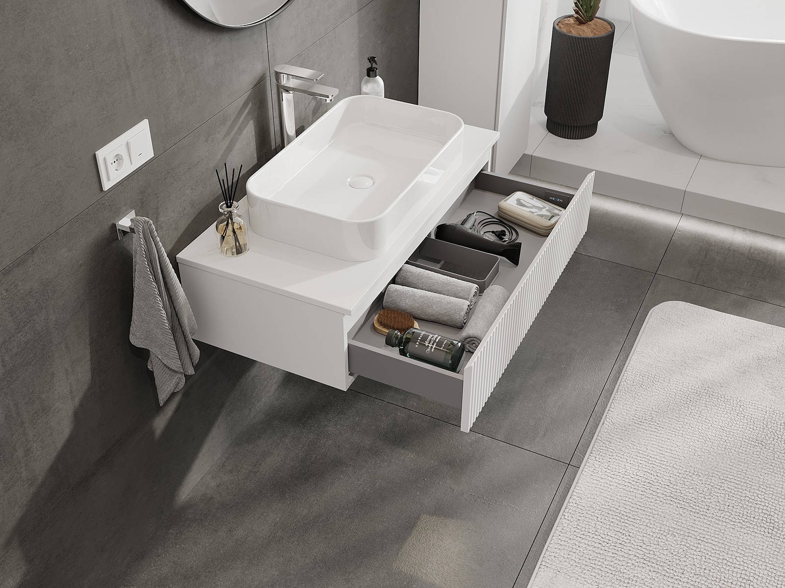 Our modular bathroom furniture can be combined in various colour configurations, allowing for complete personalisation. You can choose both the appearance and functions of individual elements, enabling you to adapt the furniture to your own stylistic and functional preferences.