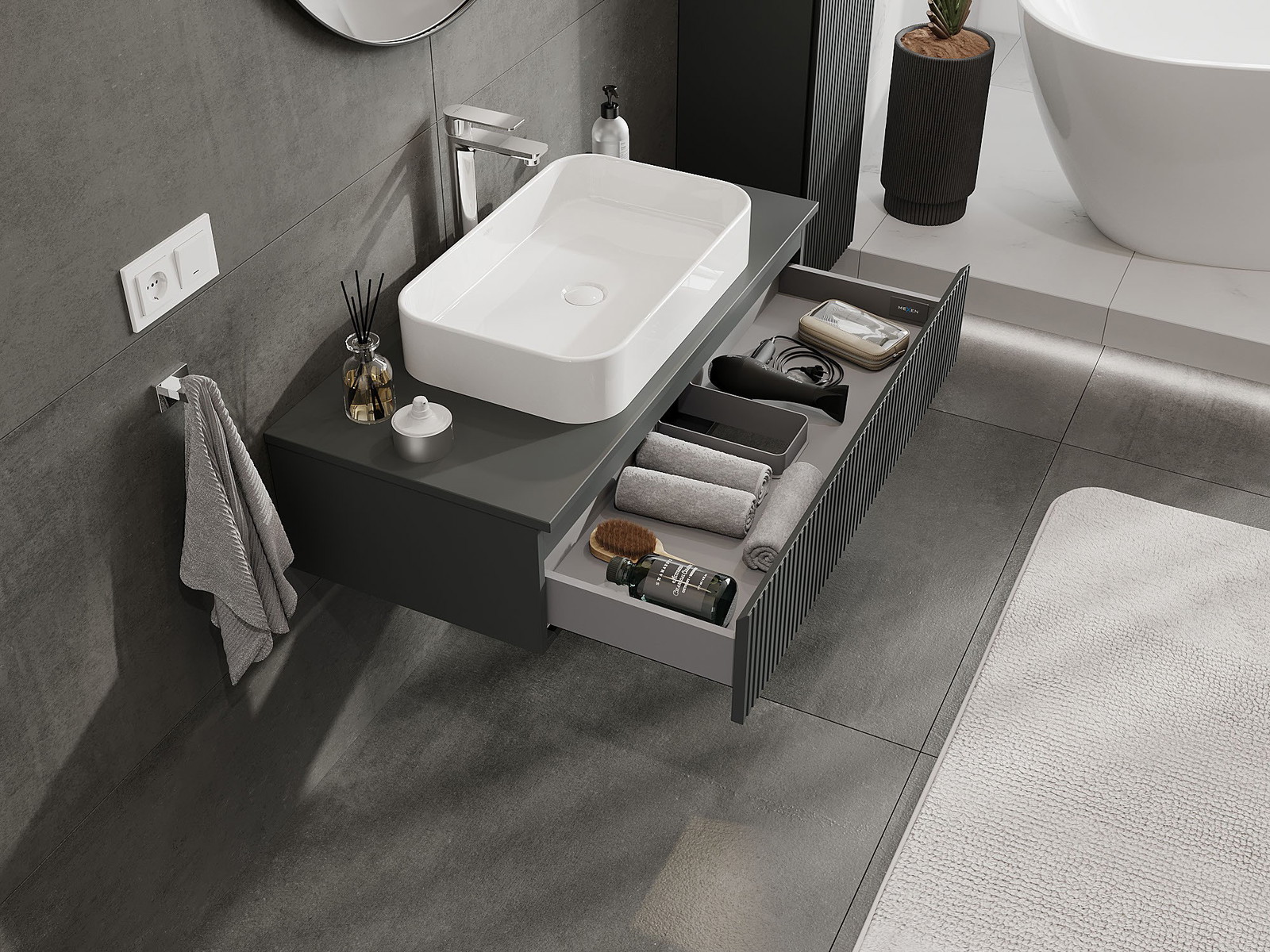 Our modular bathroom furniture can be combined in various colour configurations, allowing for complete personalisation. You can choose both the appearance and functions of individual elements, enabling you to adapt the furniture to your own stylistic and functional preferences.